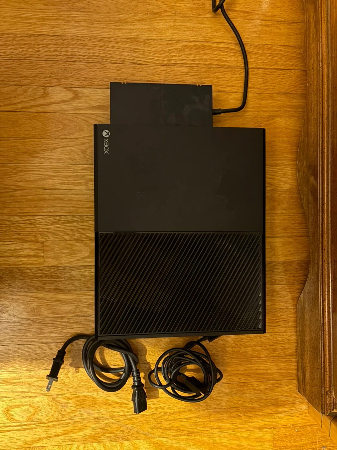 Selling a black Xbox One console. It includes the power brick and necessary cables for operation. This is a great unit for gaming or streaming media!