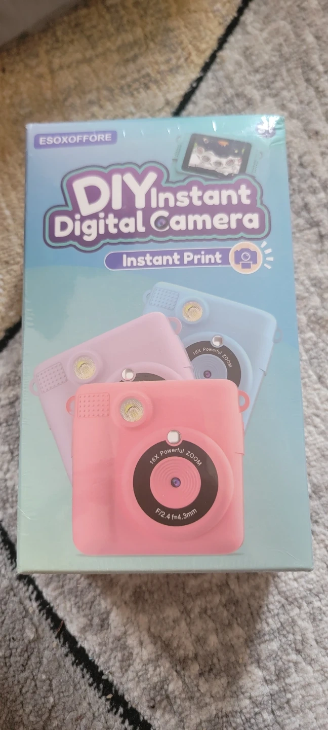This DIY instant digital camera lets you capture photos and videos. It features instant printing capabilities and a built-in rechargeable Li-Ion Polymer battery. Expandable memory is supported. Perfect for kids who love to create and print their own memories!