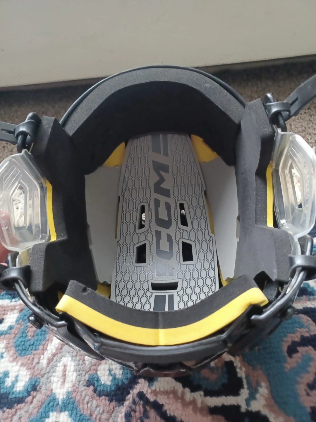 Selling a CCM hockey helmet in size XS. It's black and in good condition. Please note that ice hockey is a collision sport and this helmet is designed to protect from neck or spinal injury. Always read instructions carefully before wearing