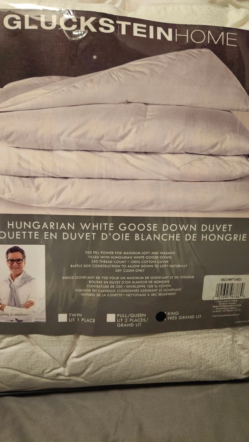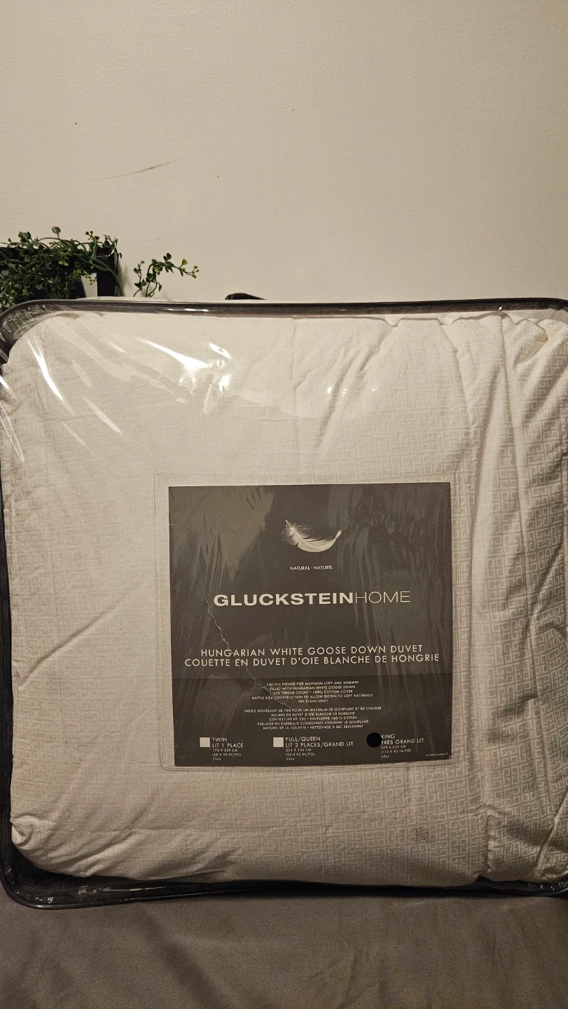 This Gluckstein Home duvet is filled with 700 fill power Hungarian white goose down for maximum loft and warmth. It features a 100% cotton cover with a 300 thread count.