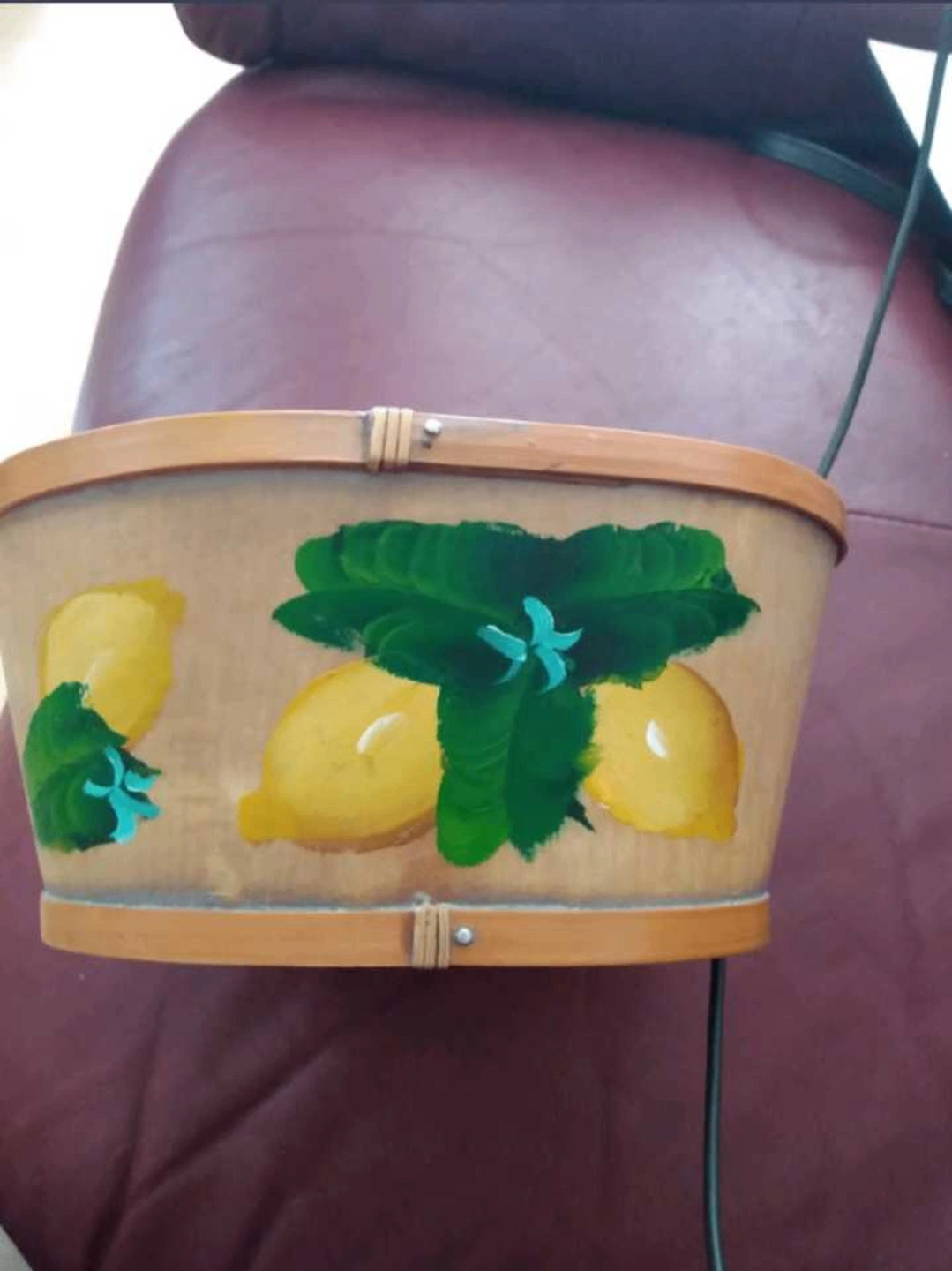 Selling a cute hand-painted basket with a lemon design. It's perfect for storage or decor in your home.
