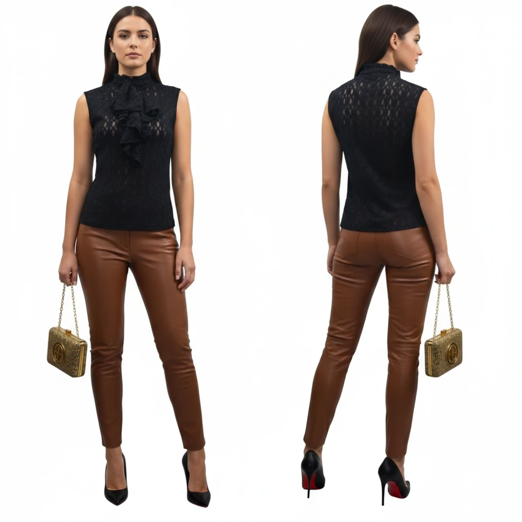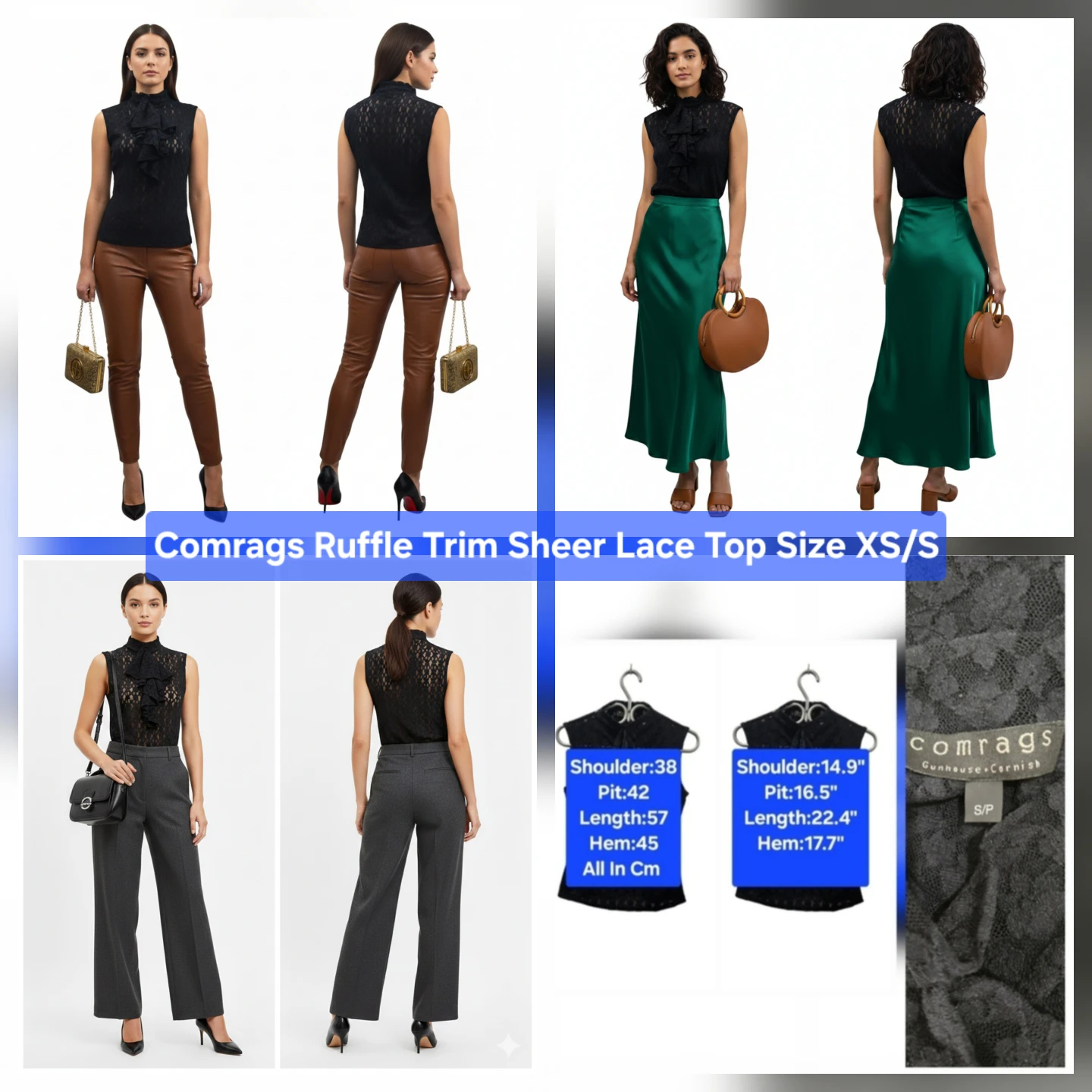 Comrags Ruffle Trim Sheer Lace Top Size XS/S