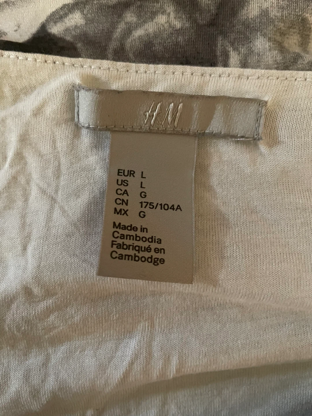 H&M women's top with a draped neckline and ruched detailing. It's a size large with a black and white floral print. Fabric is soft and stretchy. Looks great with flowy skirts in summer