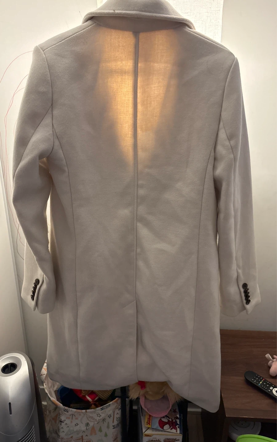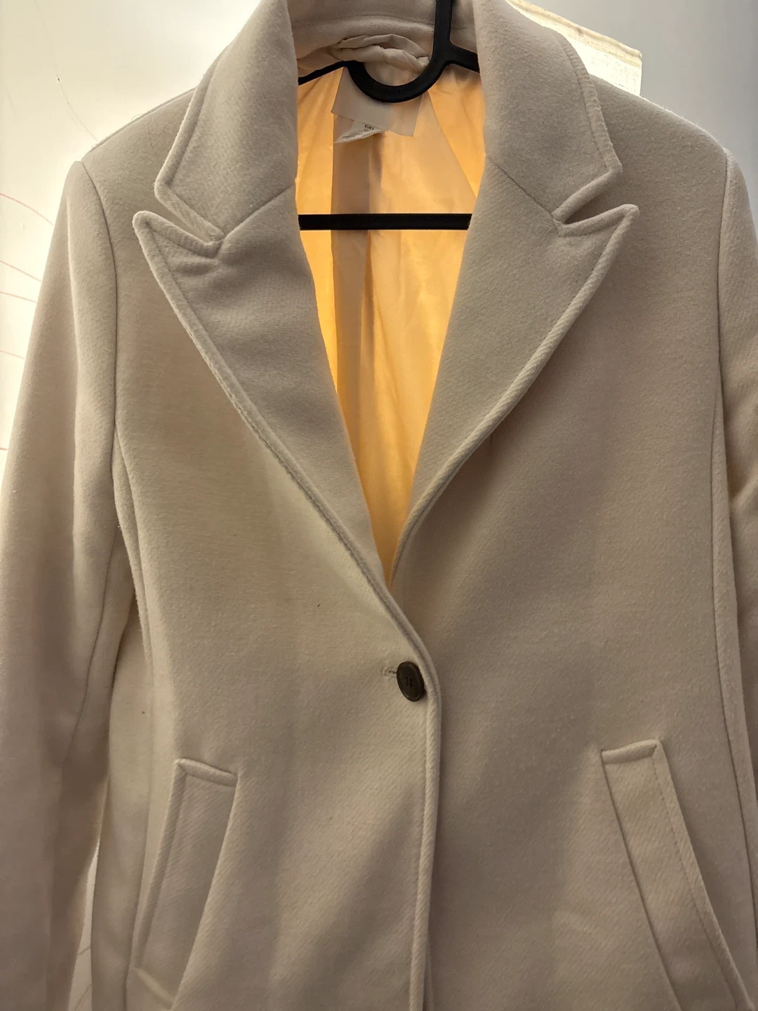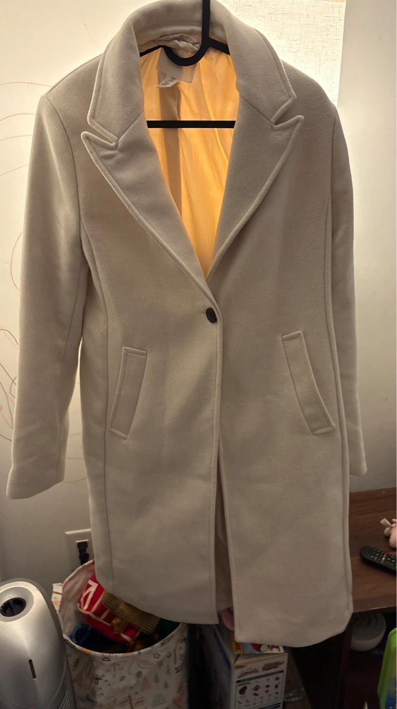 H&M Cream coloured wool blend coat. It's a size EUR S. This coat is perfect for cooler weather!