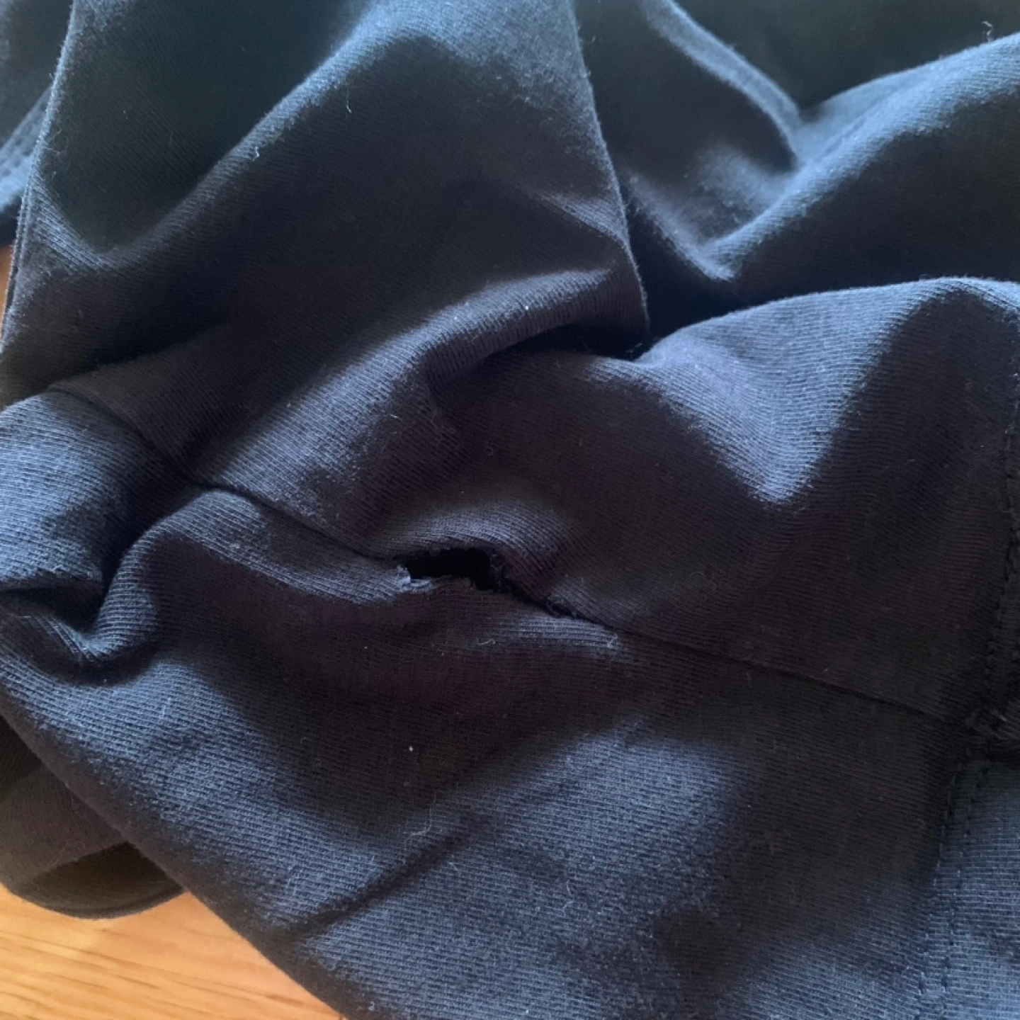 super cute and comfy, unfortunately has a rip in the side (easy fix if you know how to sew lol!)