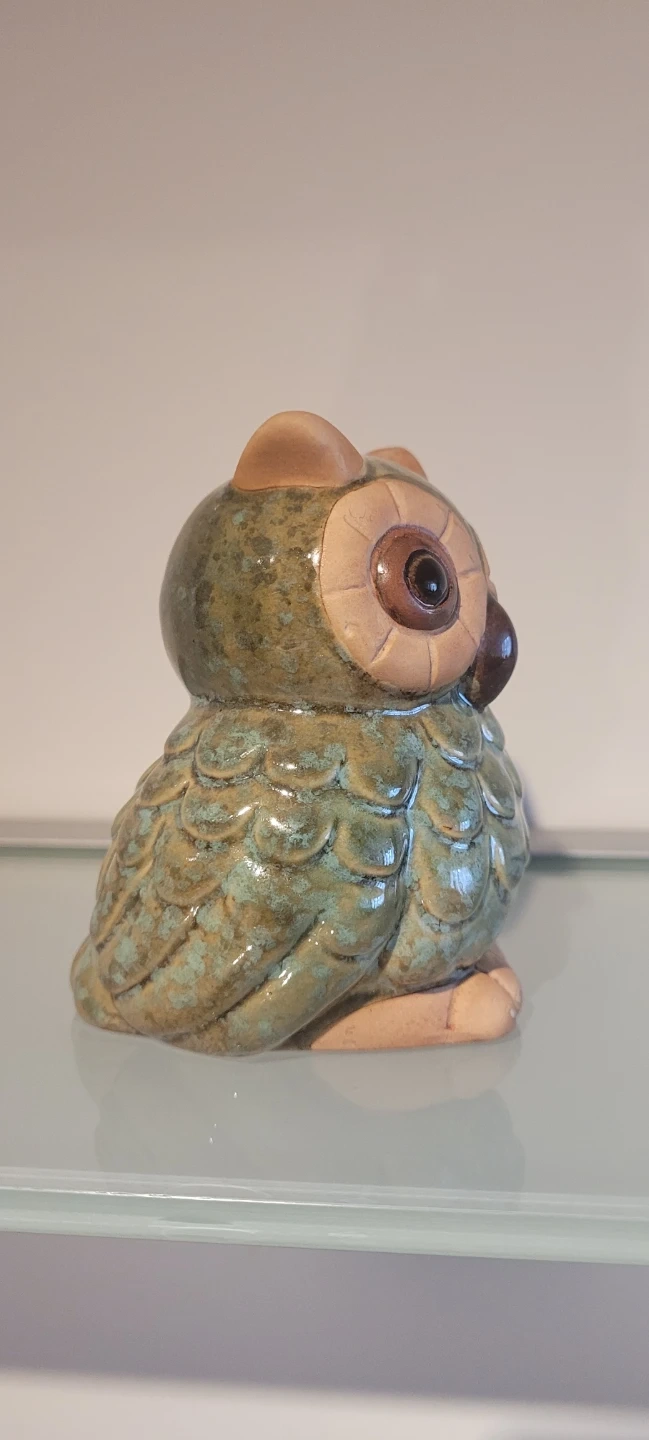 New Vintage Clay Pottery Owl Figurine Green Glazed