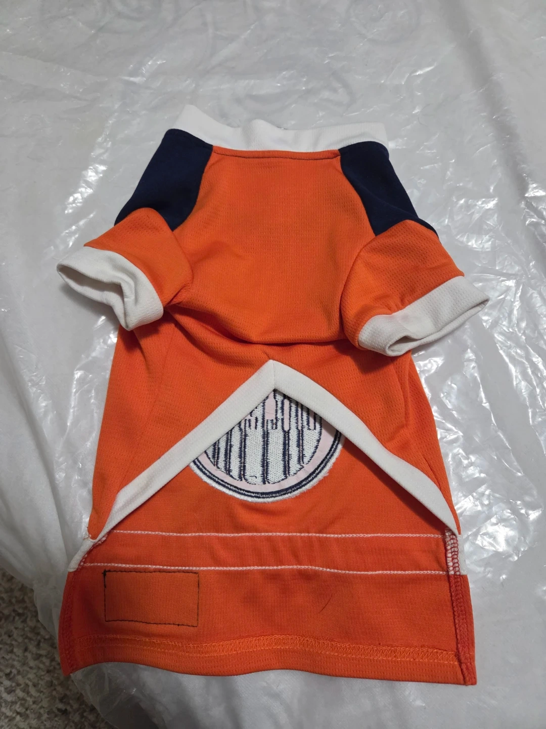 This dog jersey is designed for your pet to sport their favourite team! It's made of 100% polyester for comfort. It has the iconic Edmonton Oilers logo. SO cute!