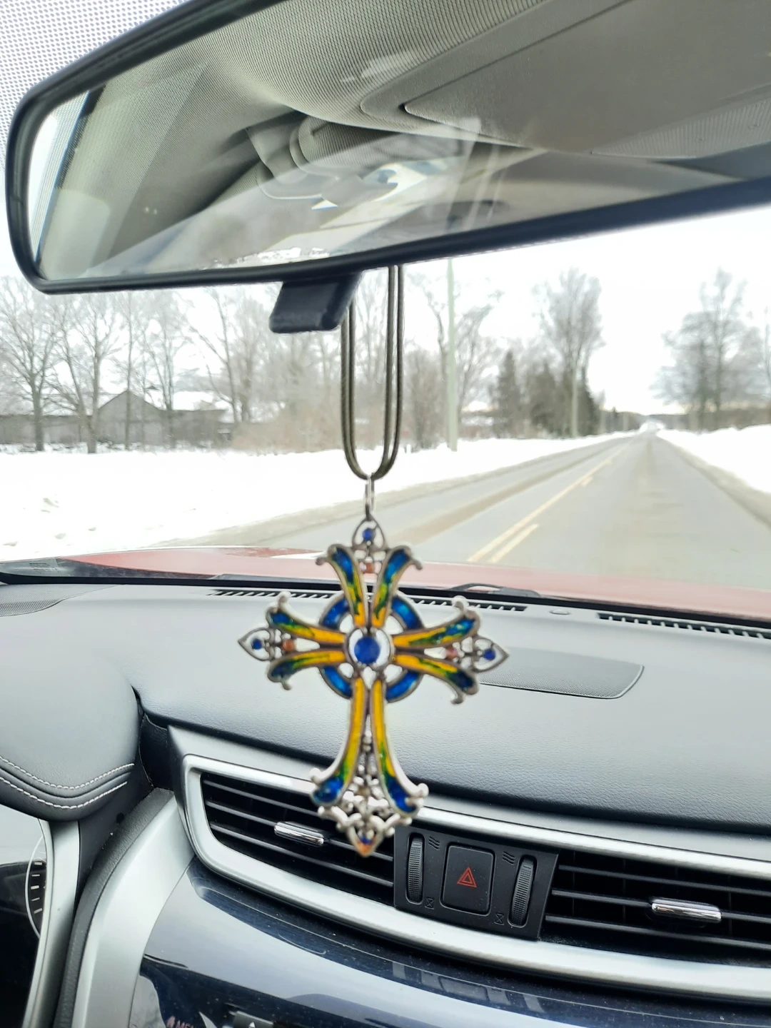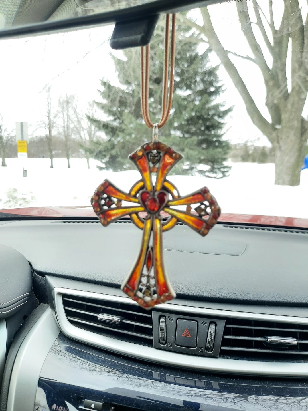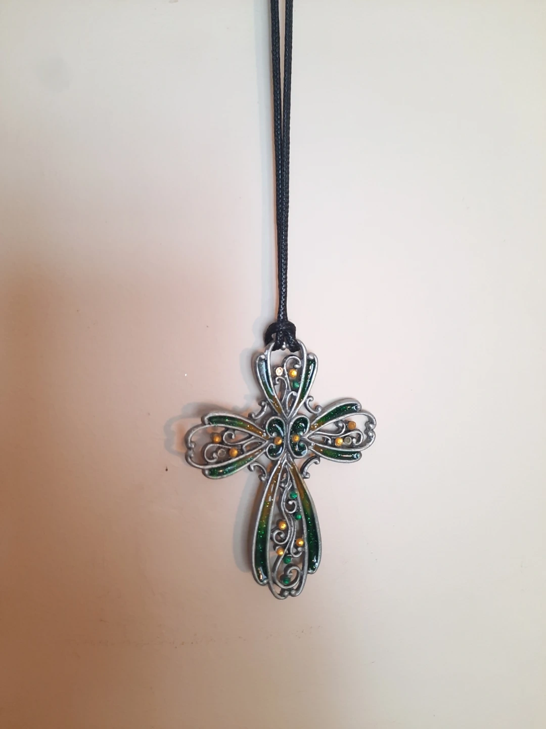 NEW epoxy corded stained glass look cross necklace, car or wall charms. Selling for $10 each. Available in 3 styles. The crosses are 4 inches high by 3 inches wide and cord length can be adjusted. Decorative cross ornament features intricate metalwork with colorful enamel accents. It's designed to hang and add a touch of style.Pick up in N.Bowmanville or may be able to meet depending on location. Please see my other ads for more decor items for sale.