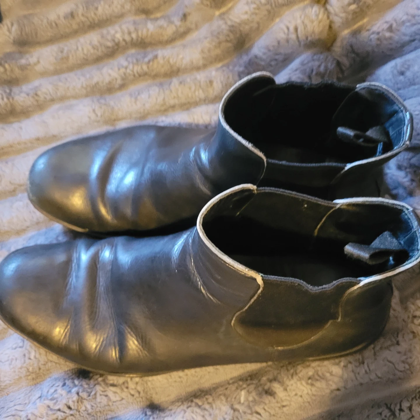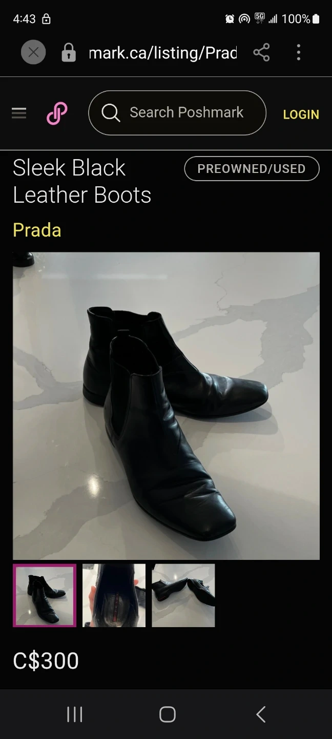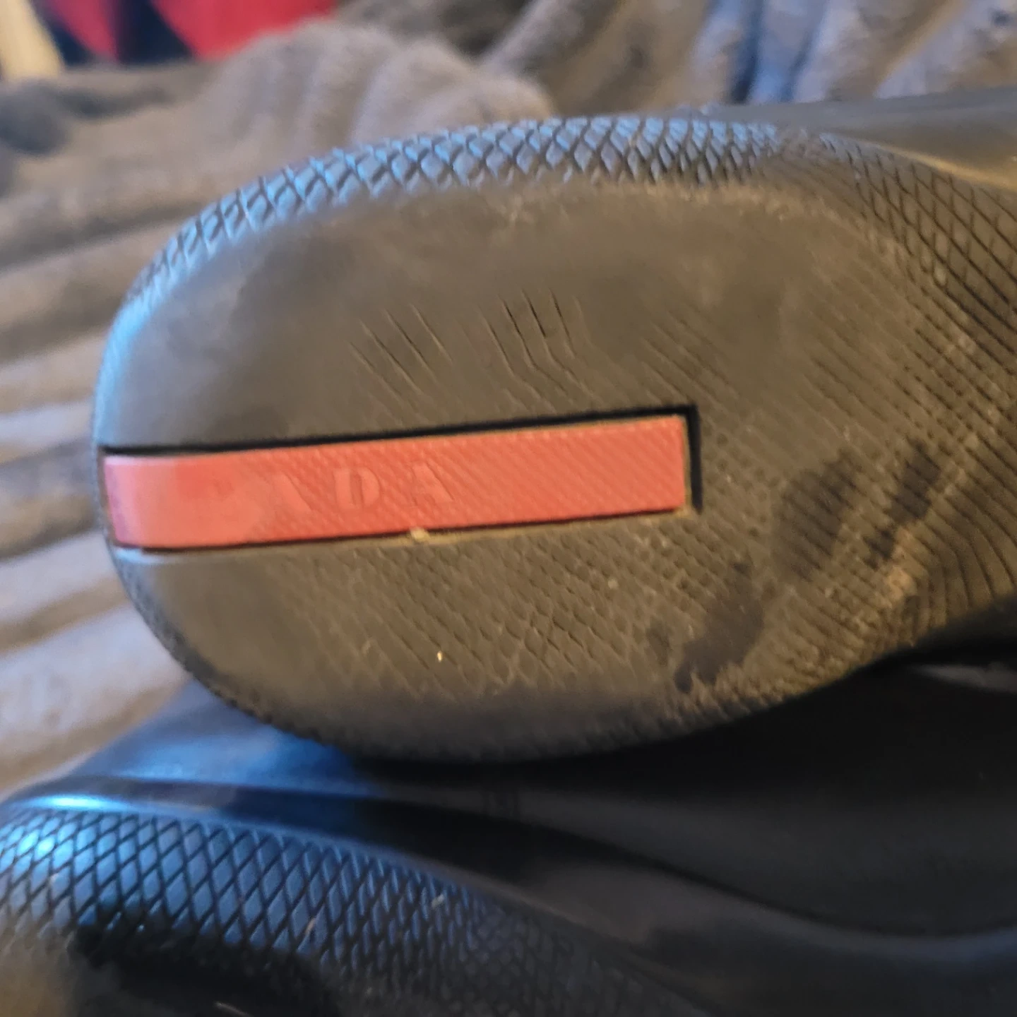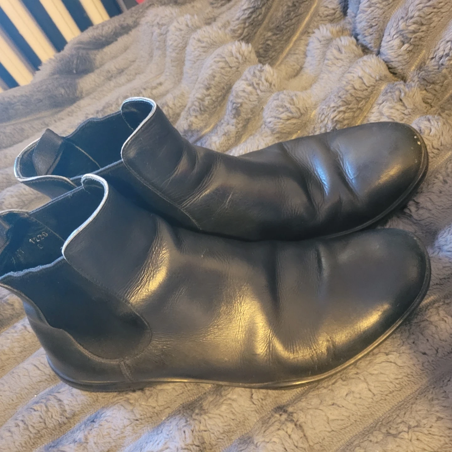 These are stylish black leather Chelsea boots from Prada. They feature elastic side panels for easy wear. Made with quality leather and a durable sole. Well loved but lots of life left...Prada 8 = US 9