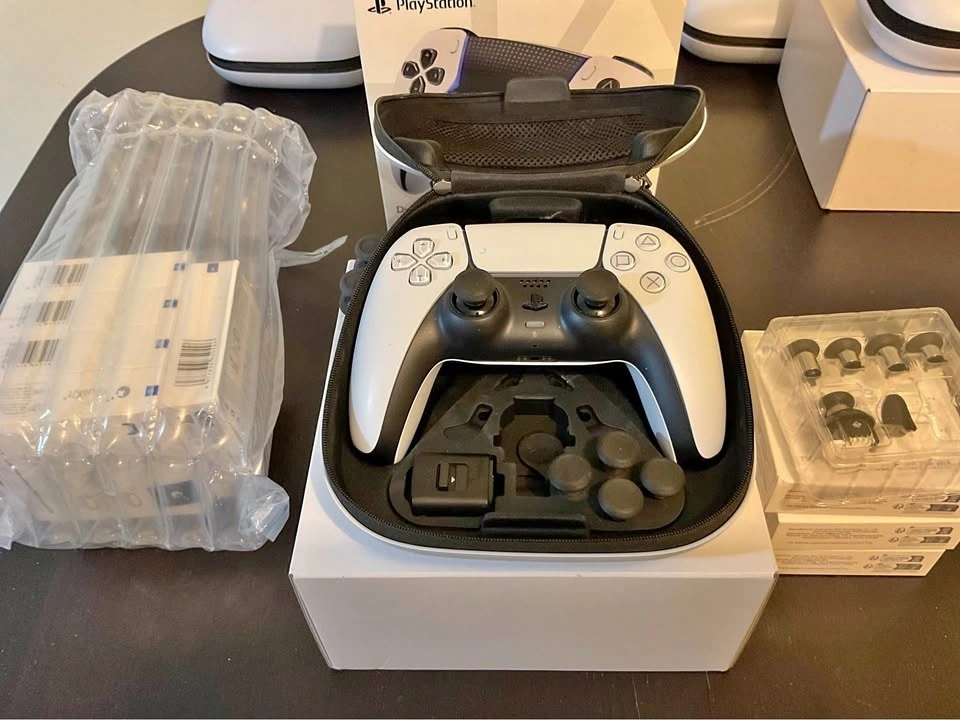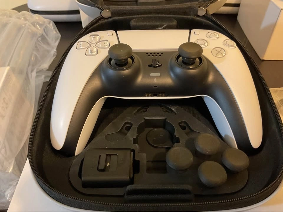 This is a white Sony DualSense Wireless Controller for PlayStation 5, PC, Mac, and mobile devices. It has been upgraded with Gulikit NS55 720-degree TMR joysticks featuring tension adjustment. The controller is in excellent, like-new condition with no sticky buttons or discoloration. It comes with the original box, a carrying case, and all the included Gulikit thumbstick caps (2 standard, 2 high dome, 2 low dome). Never worry about stick drift again! You can test the controller before you buy. Feel free to message me if you have any questions!