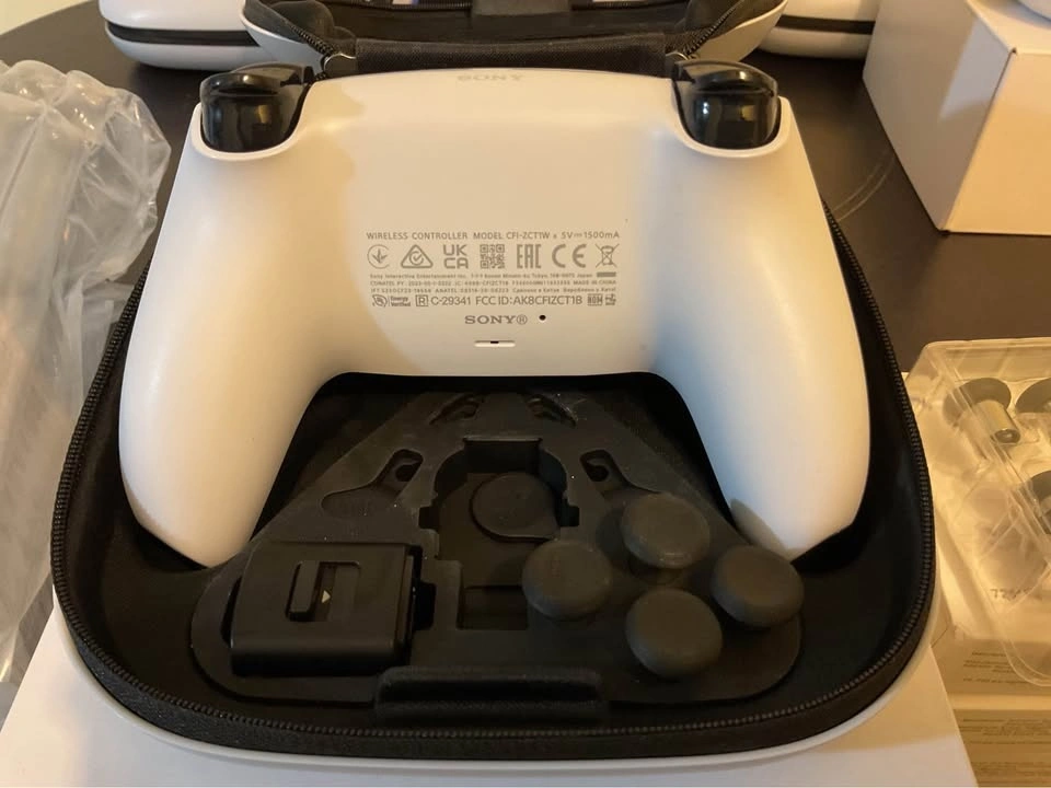 This is a white Sony DualSense Wireless Controller for PlayStation 5, PC, Mac, and mobile devices. It has been upgraded with Gulikit NS55 720-degree TMR joysticks featuring tension adjustment. The controller is in excellent, like-new condition with no sticky buttons or discoloration. It comes with the original box, a carrying case, and all the included Gulikit thumbstick caps (2 standard, 2 high dome, 2 low dome). Never worry about stick drift again! You can test the controller before you buy. Feel free to message me if you have any questions!