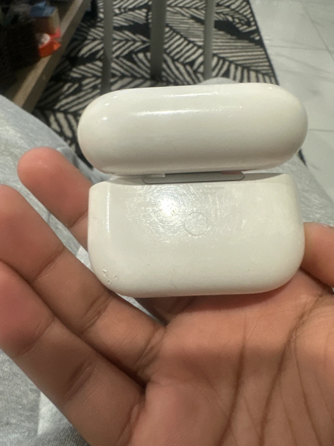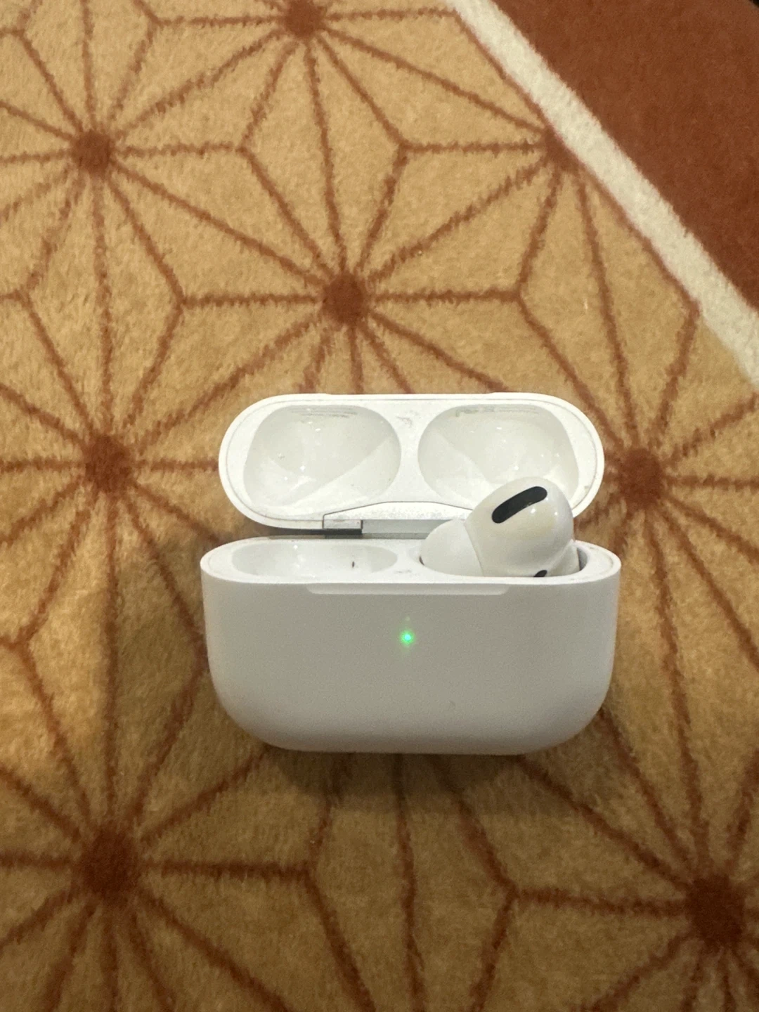 Apple AirPods Pro (1st generation) with charging case. Supports noise cancellation and transparency mode. Includes AirPods and charging case. Firm price comes with a box and charger no eartips and it has a lightning charger
