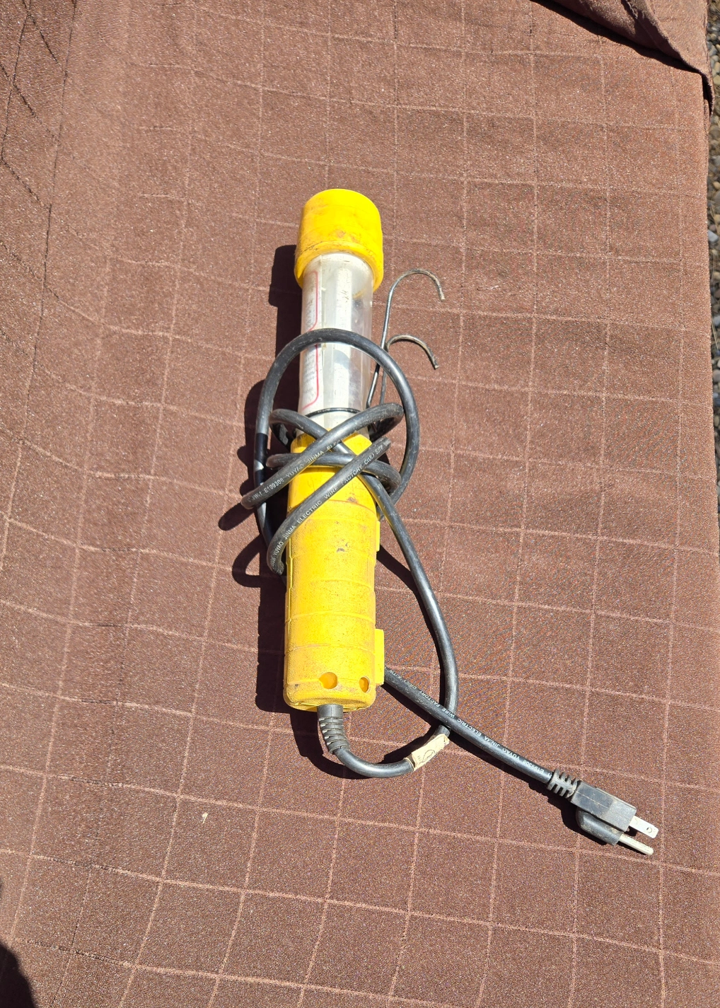 Final price drop. Good condition. 6' cord. Light and standard outlet work. Has a clip so can hang so can use hands free. Has an on/off switch. Cross-posted.
