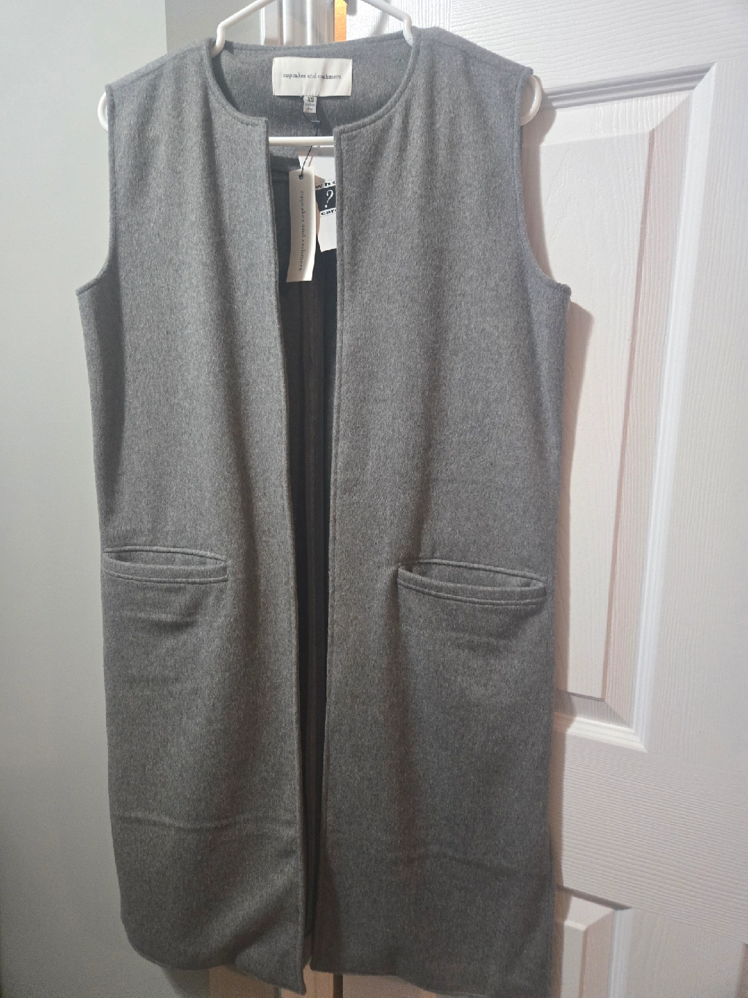 I'm selling a Cupcakes and Cashmere Shannon JKT vest in size XS! It's a stylish grey vest made from 50% wool and 50% polyester. The original price was $175. It's in great condition and ready for a new home. Can fit larger.