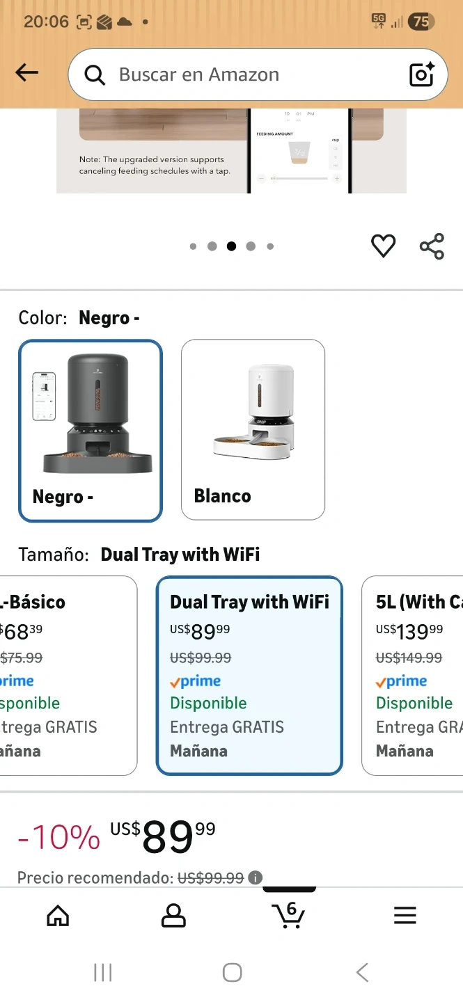 Design Suitable for Two Cats: The PETLIBRO WiFi Automatic Cat Feeder is designed for families with two cats. Dry food is evenly distributed between two bowls to prevent competition. A large 5-liter capacity meets the diverse needs of cats and dogs. Up to 10 meals per day can be preset, and the portion size can be freely adjusted (1-50 servings).