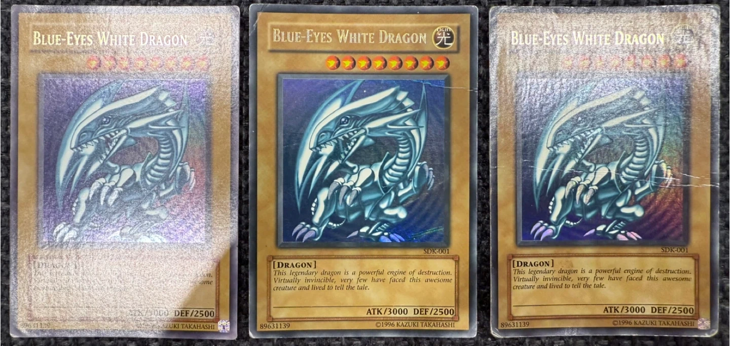 26Set: Starter Deck Kaiba (SDK-001) Edition: Unlimited Type: Holo / Ultra Rare Card 1 — $90 OBO - Condition: Like New / Good - TCG: Light Play (LP) Details: - Clean holo, excellent shine, minimal whitening on edges, no bends or creases. - Structurally solid and display-ready — the best condition of the three. _______________________ Card 2 — $30 OBO - Condition: Fair - TCG: Heavily Played (HP) _______________________ Card 3 — $40 OBO - Condition: Fair - TCG: Heavily Played (HP) Great nostalgic collector’s piece for casual fans or rebuilders of Kaiba’s deck.