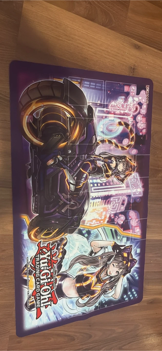 Selling a Yu-Gi-Oh! Trading Card Game playmat featuring characters from Shonen Jump. The playmat has a purple background with a detailed design. Great for any Yu-Gi-Oh! enthusiast!