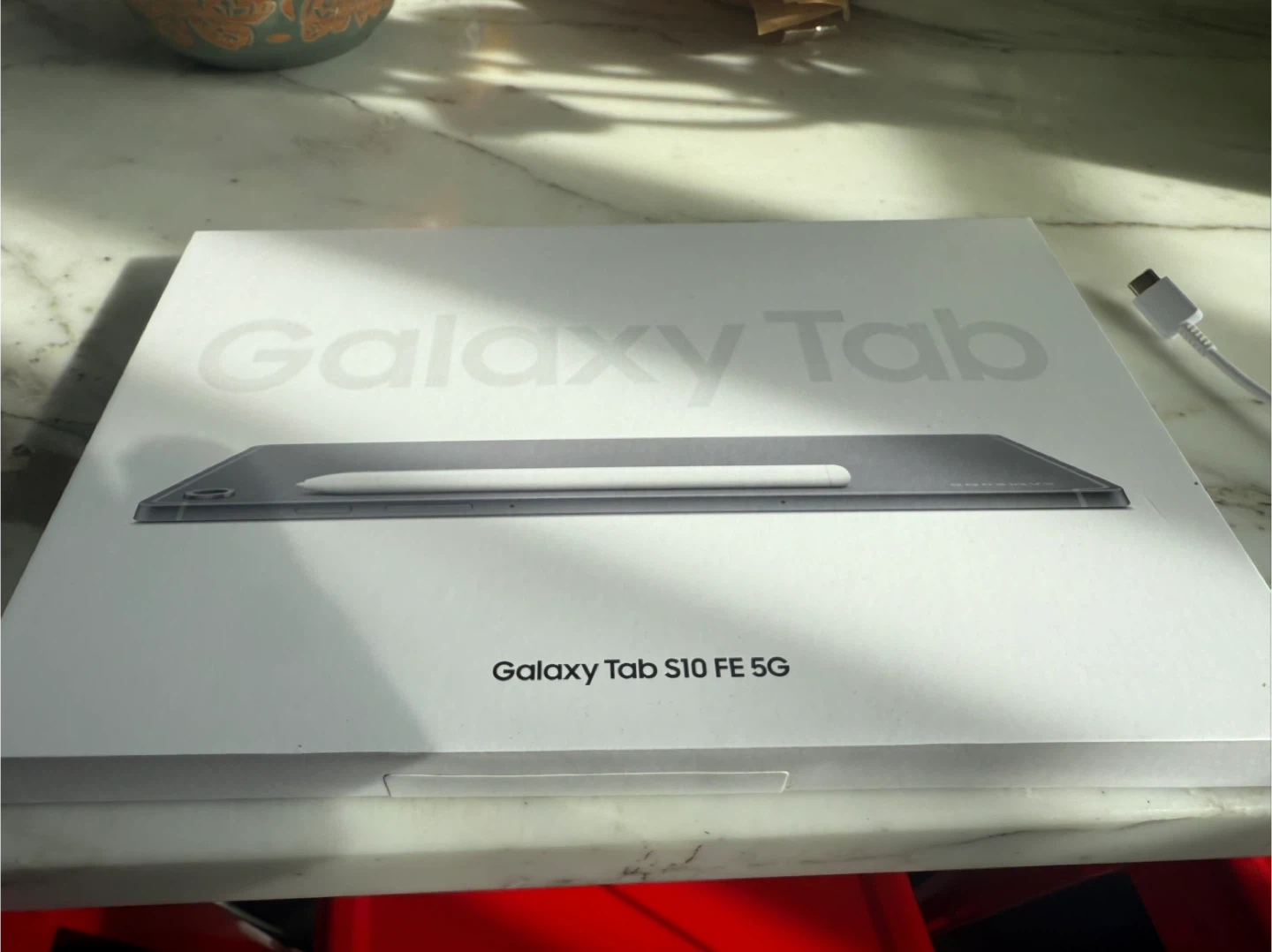 This is a Samsung Galaxy Tab S10 FE 5G tablet. It's in its original packaging and includes an S Pen. The tablet comes with 5G connectivity. It is unopened and factory sealed. Retails for 653.24 with tax. Selling for fair price below market for new item. Hoping for hyperlocal interest so can facilitate delivery meeting nearby. Cheers!