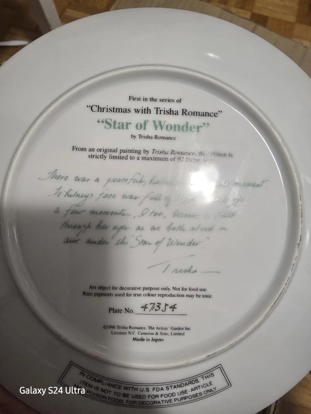 First in the series of "Christmas with Trisha Romance" "Star of Wonder" by Trisha Romance. Plate No. 473J4. Art object for decorative purpose only. Not for food use.