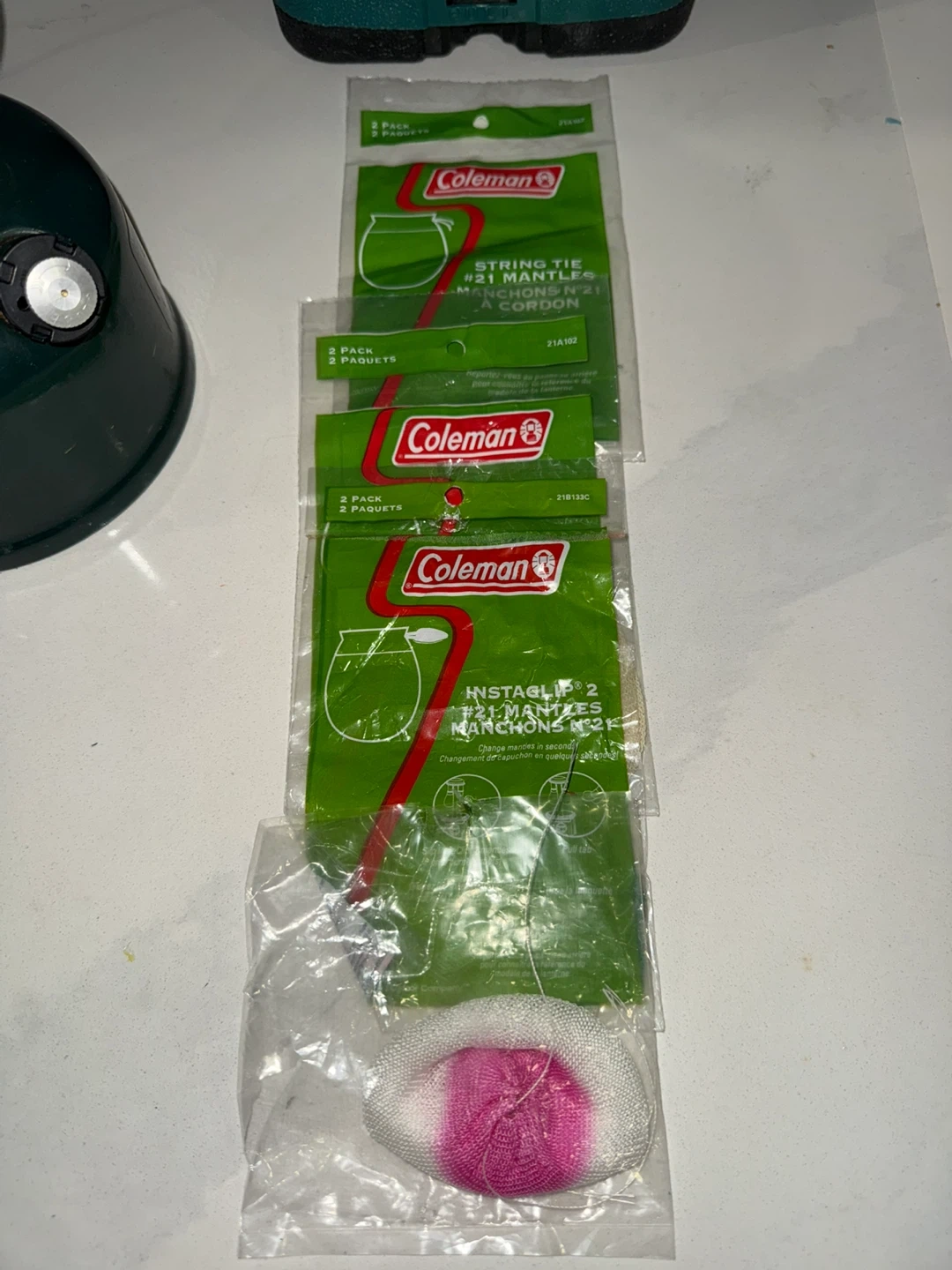 This Coleman 288 lantern comes with its original green carrying case. Also included are 4 packs of Coleman #21 string tie mantles. Fill the tank with 1.3 pints (739 mL) of naphtha and it’ll run for up to 10 hours.