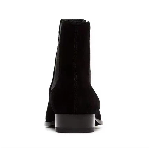 This custom-made handmade boot is a stylish and unique choice for any occasion. Featuring an ankle shaft style with a round toe shape and buckle closure, these boots are crafted with black suede and leather lining and outsole. The animal print pattern adds a touch of personality, while the vintage design makes them truly one-of-a-kind. Whether for travel, activewear, weddings, or business events, these boots are sure to make a statement with their distinctive style. Made in Pakistan by the brand bob, these boots are a high-quality and fashionable option for any man's wardrobe.