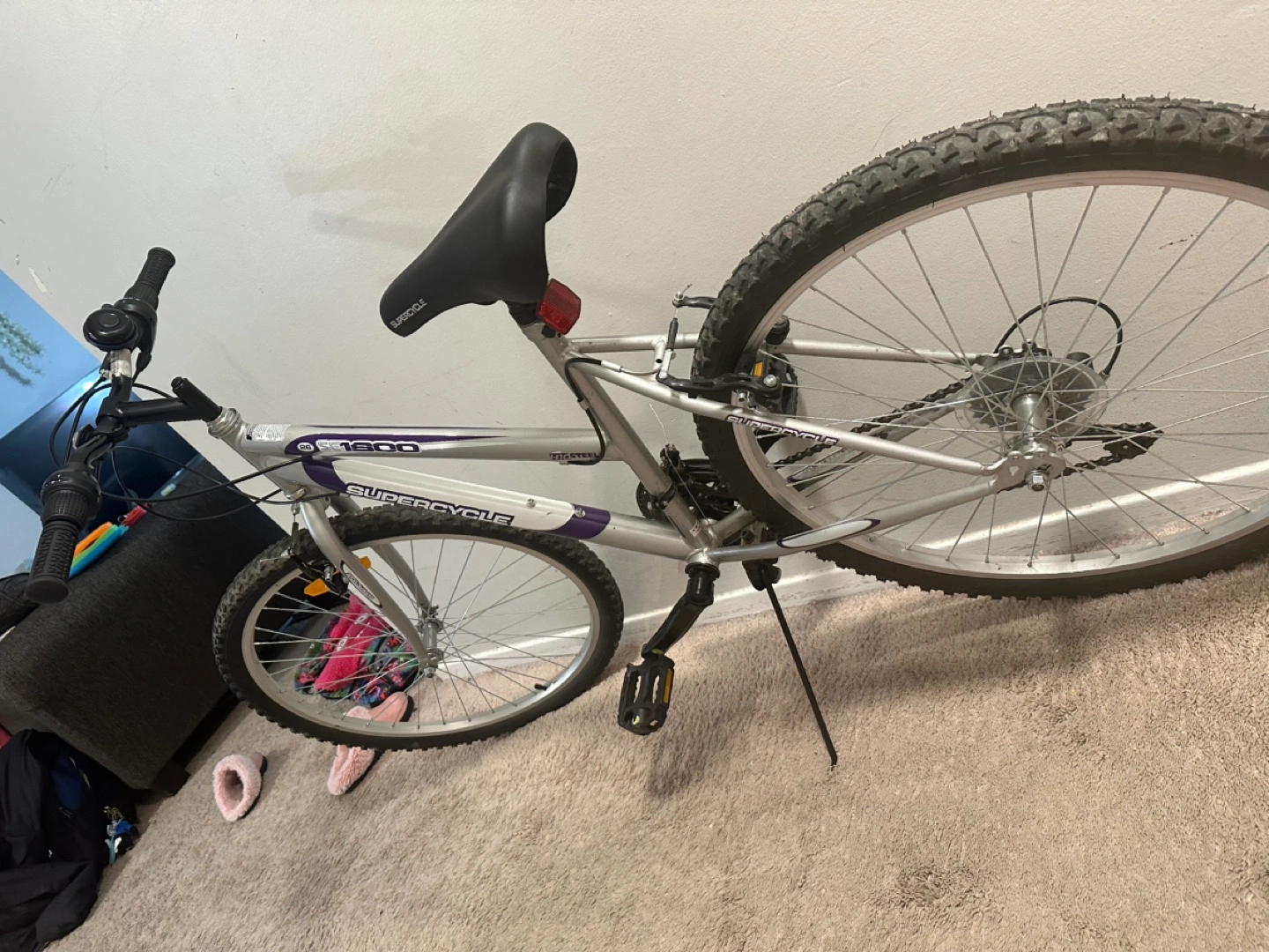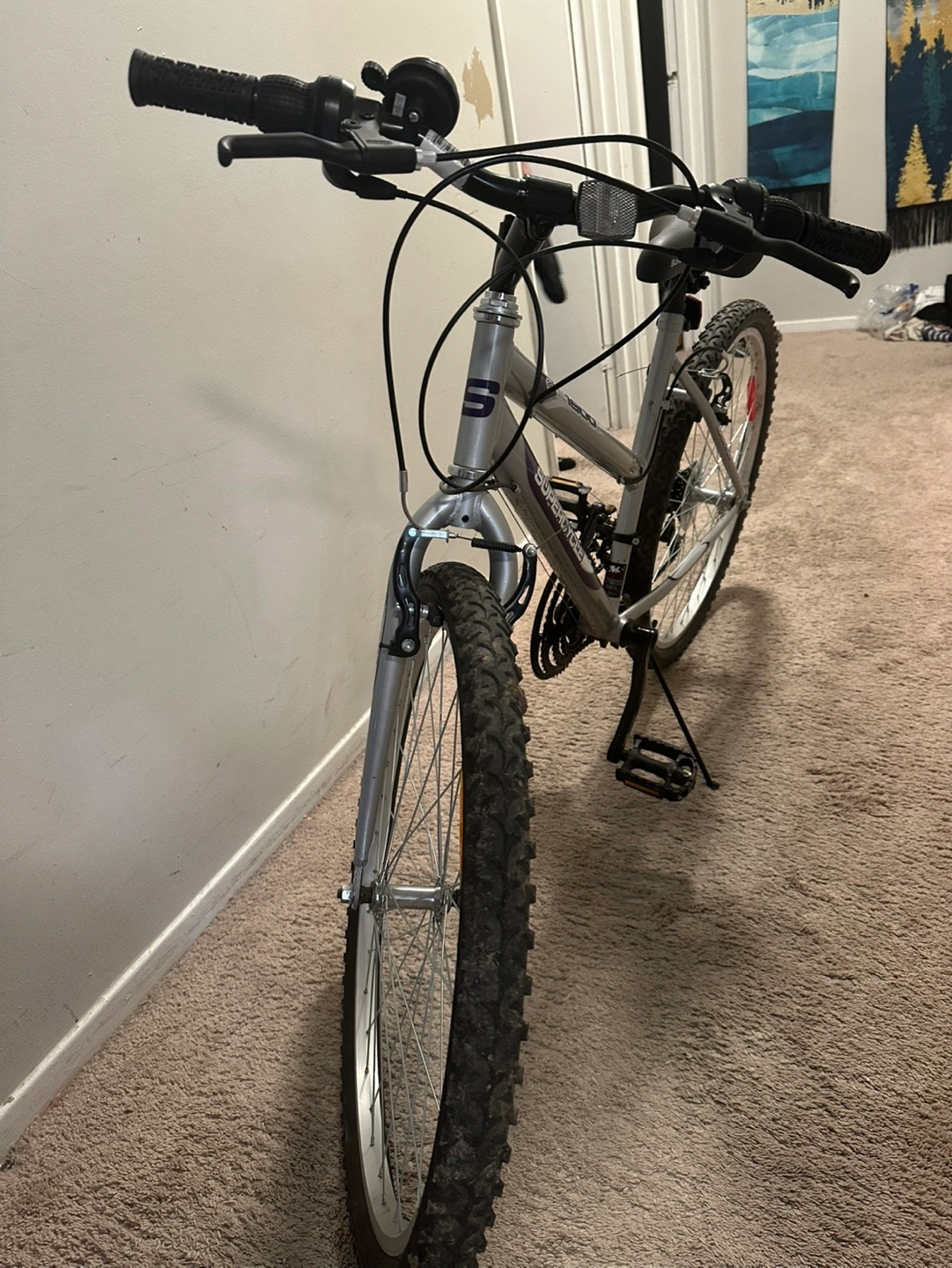 Buy & SellSupercycle 1800 Mountain BikeSupercycle 1800 Mountain Bike$110Silver and purple women's mountain bike. Good condition. Ready to ride.ConditionLike newWHERE TO MEETMeadowvale GardenView MapSELLERShreyaMeadowvale382 reviews3 chats·3 favorites·119 viewsSEND CHAT TO SELLERHi Shreya! I’m interested in your listing.Hi Shreya! I’m interested in your listing.Get the Karrot app to chatSign In to chat