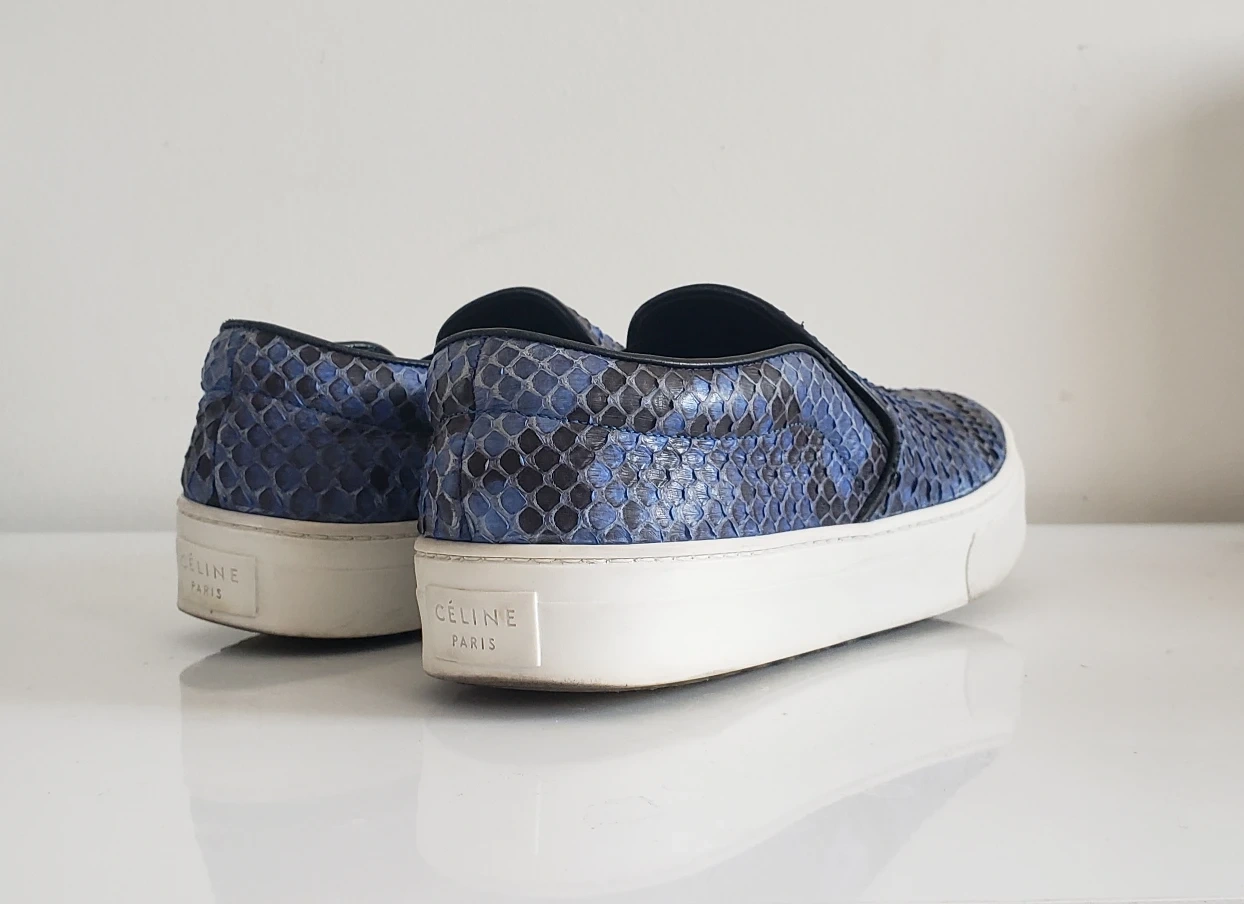 Celine Blue Snakeskin Slip-On Sneakers - Rare