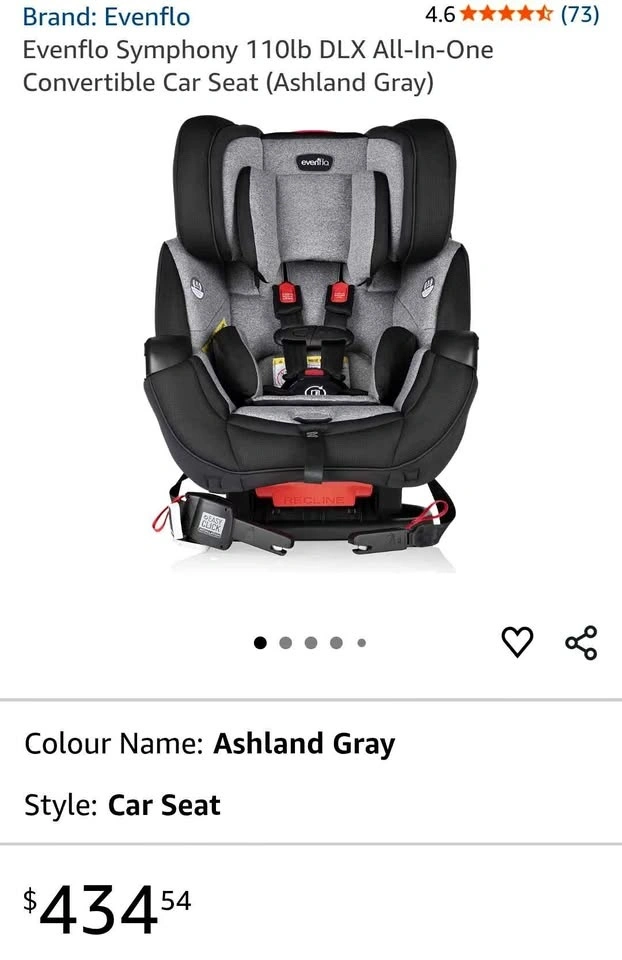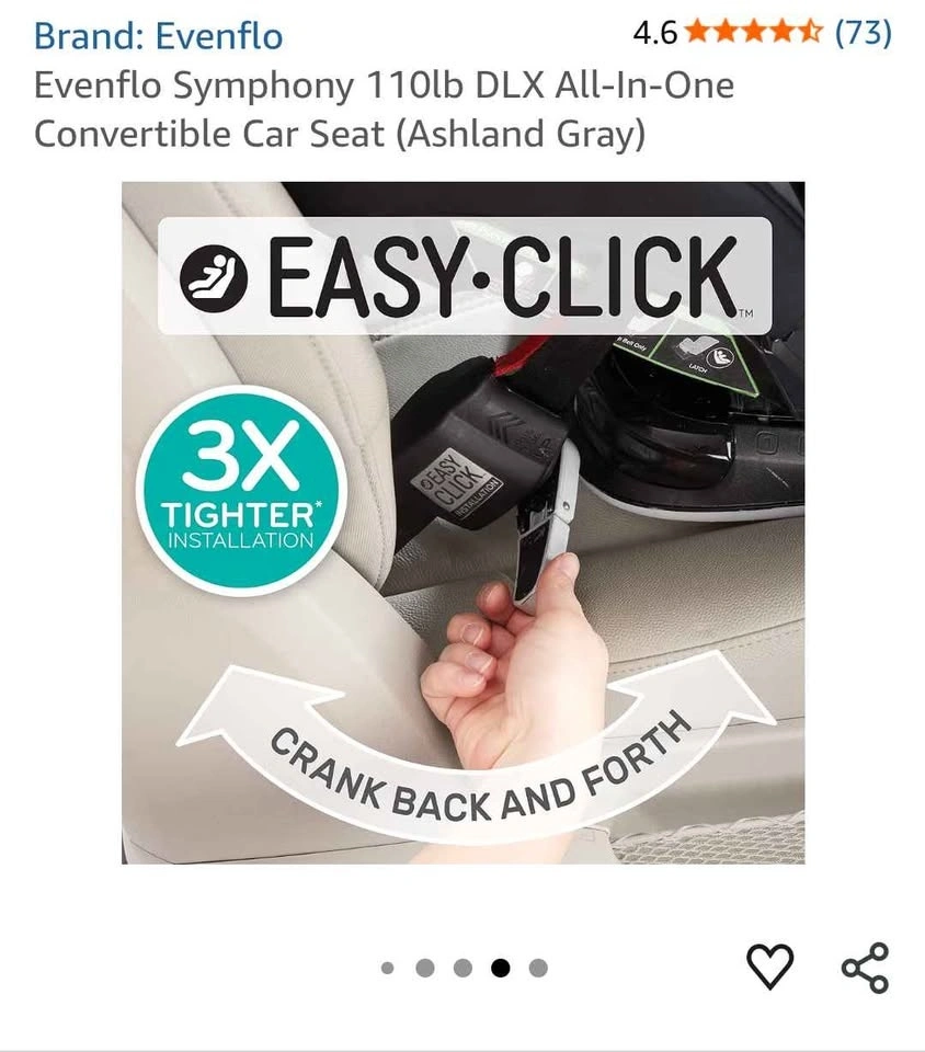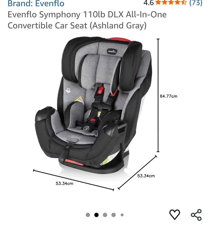 Evenflo Symphony DLX All-In-One Convertible Car Seat — brand new with tags, open box.