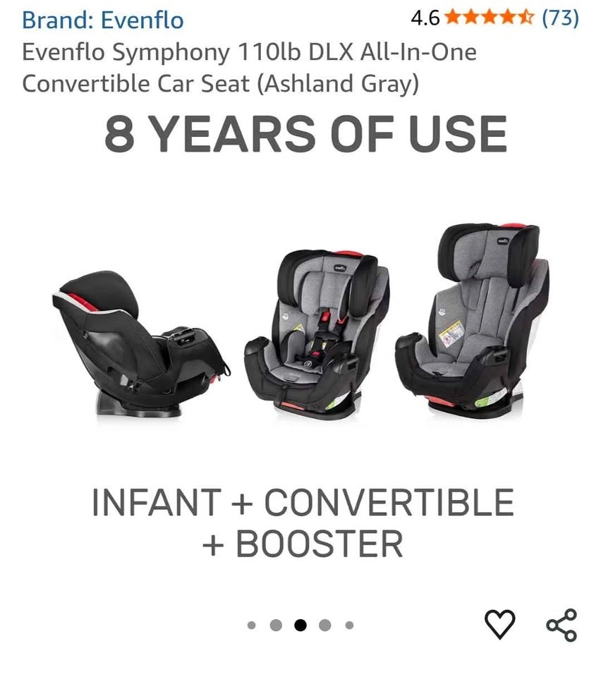 Evenflo Symphony DLX All-In-One Convertible Car Seat — brand new with tags, open box.
