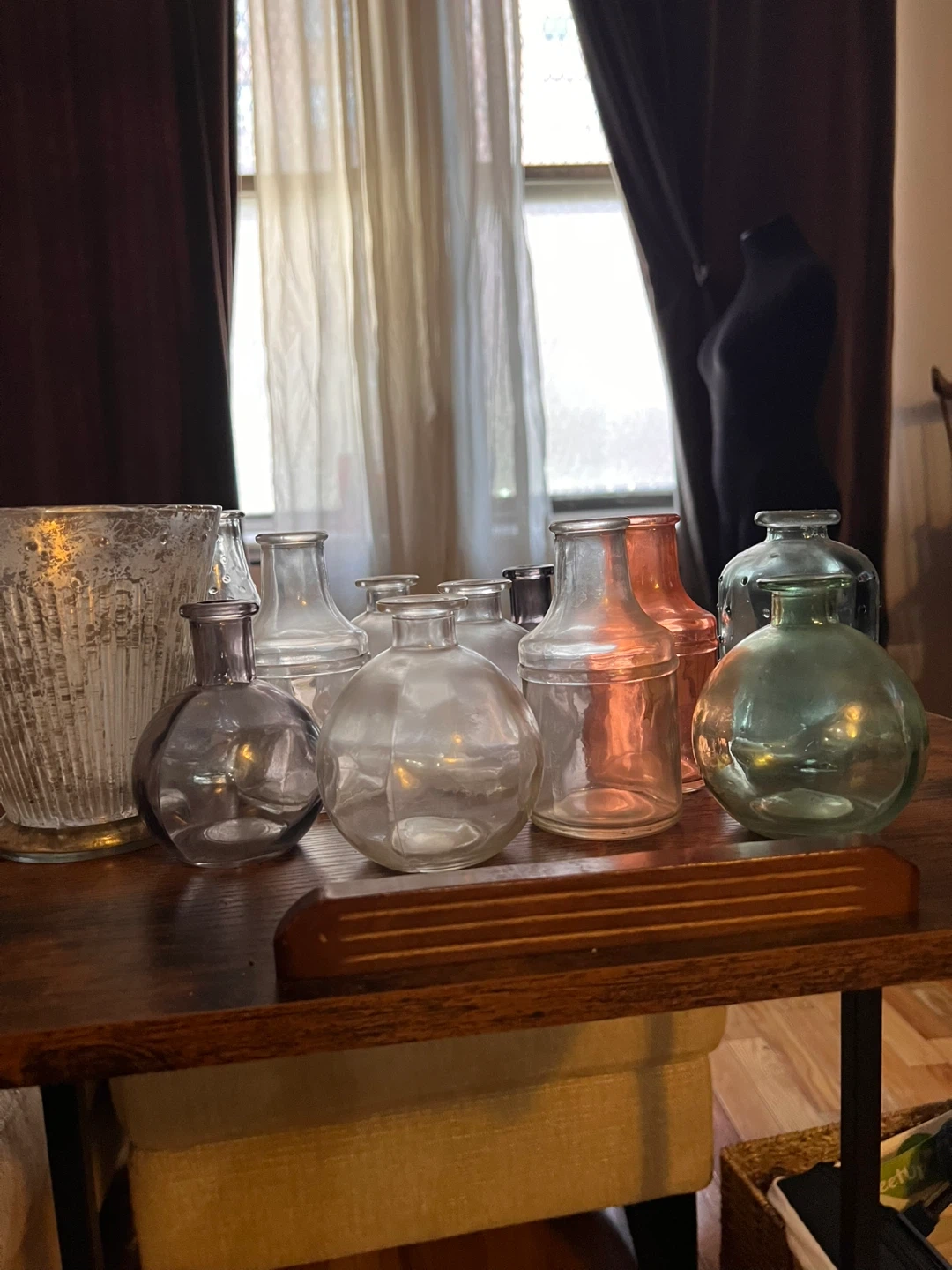 Selling a collection of assorted decorative glass vases! They come in various shapes and colors, perfect for adding a touch of charm to any room. Great for displaying flowers or as standalone decorative pieces