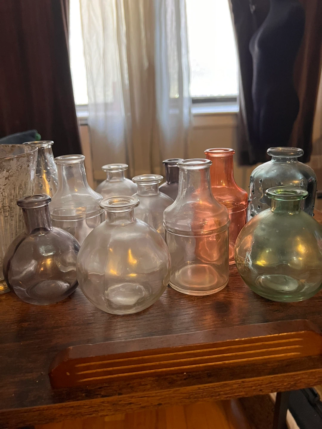 Selling a collection of assorted decorative glass vases! They come in various shapes and colors, perfect for adding a touch of charm to any room. Great for displaying flowers or as standalone decorative pieces