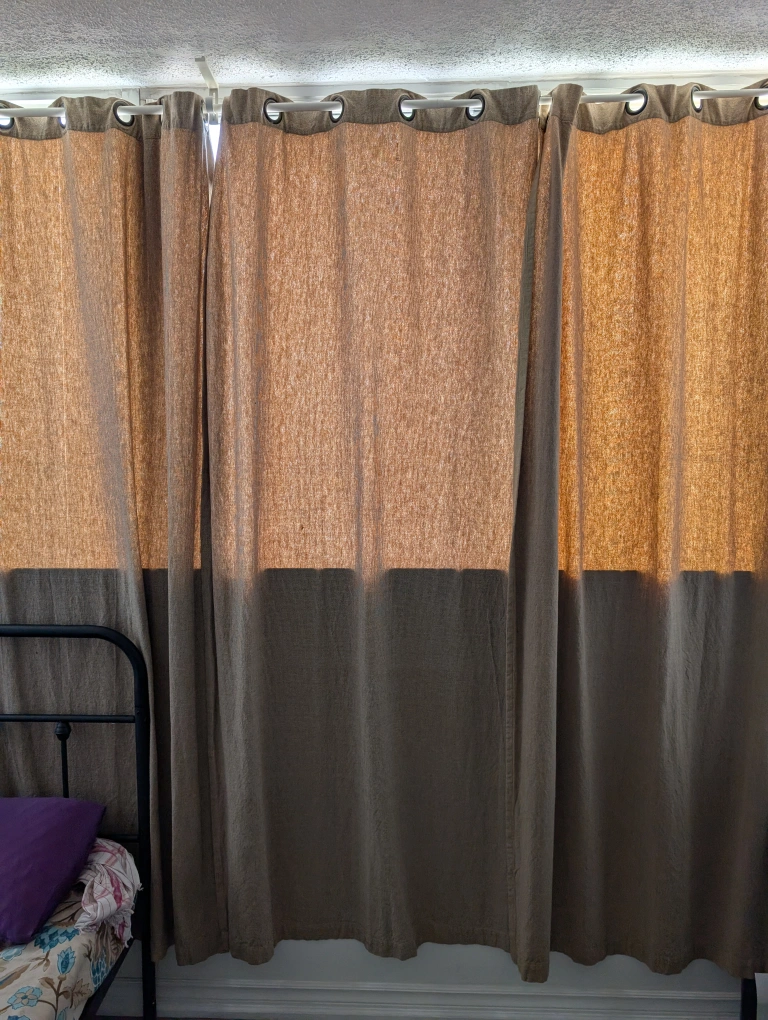 These are curtains, featuring a neutral colour scheme. Grommet-top style for easy hanging. Very useful for creating a relaxed ambiance in any room.