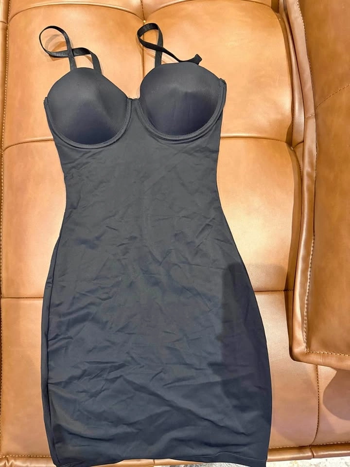 Gently used, worn only once. This sleek slip dress is perfect for layering under your favorite outfits. Its curve-hugging design creates a slimming effect. Fits sizes X-Small to Small.