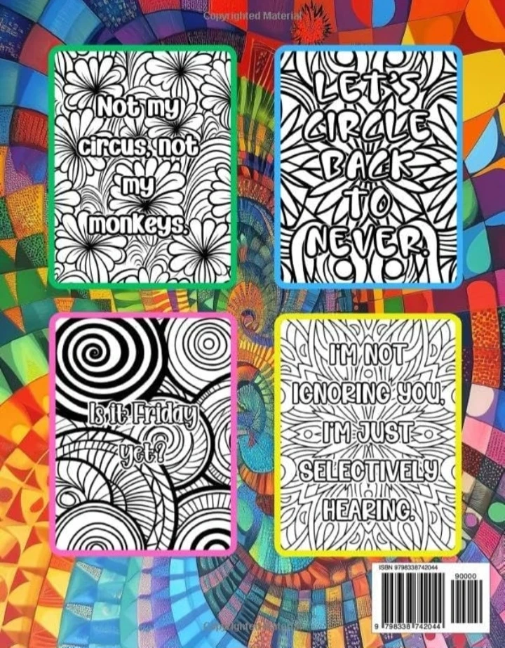 This is a paperback "Swear Word Coloring Book for Adults". It features designs with humorous and sarcastic quotes. It's great for stress relief!