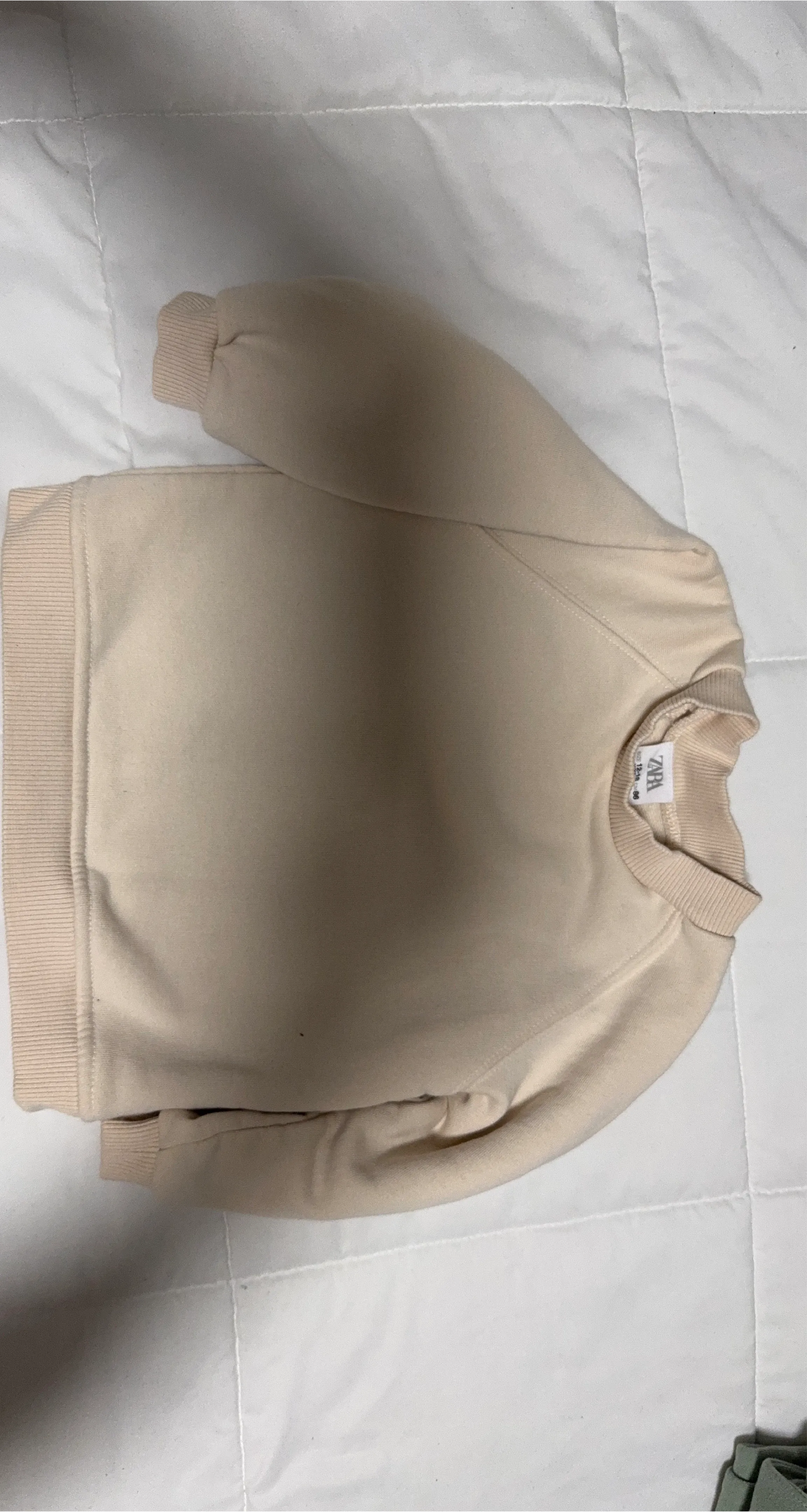 Here’s a cute beige sweatshirt from Zara Kids! The size is 12-18 months. It's in great condition and ready for a new home