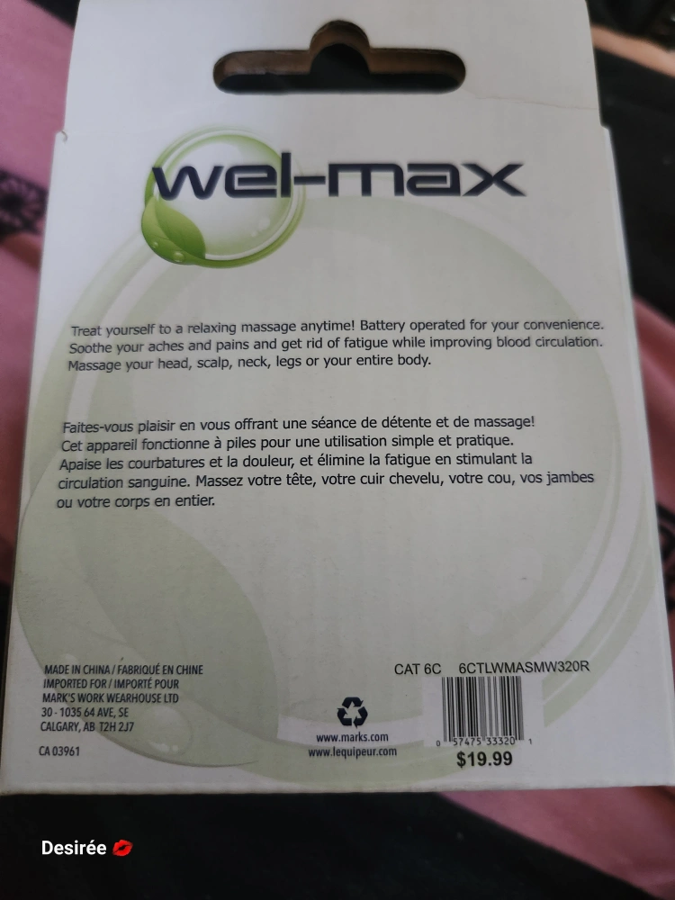 Looking a little like a mini robot, this Wel-max hand-held massager offers several health benefits. It soothes aches and pains and helps to improve blood circulation. It's designed for massaging your head, scalp, neck, legs or your entire body. The battery-operated massager has LED light-up legs.
