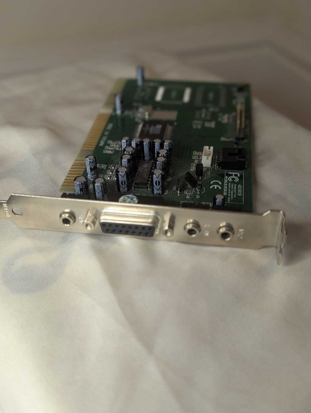 Vintage FX-3D sound card – a perfect find for retro PC enthusiasts or collectors of classic computer hardware. PCI sound card designed for 90s and early 2000s desktop systems. Supports 3D positional audio for an immersive gaming and multimedia experience. Compatible with Windows 95/98 and early XP setups. Great for restoring vintage gaming PCs or completing a retro build. In good condition, untested but visually clean and well-preserved. Can deliver within Hamilton for an extra $10.