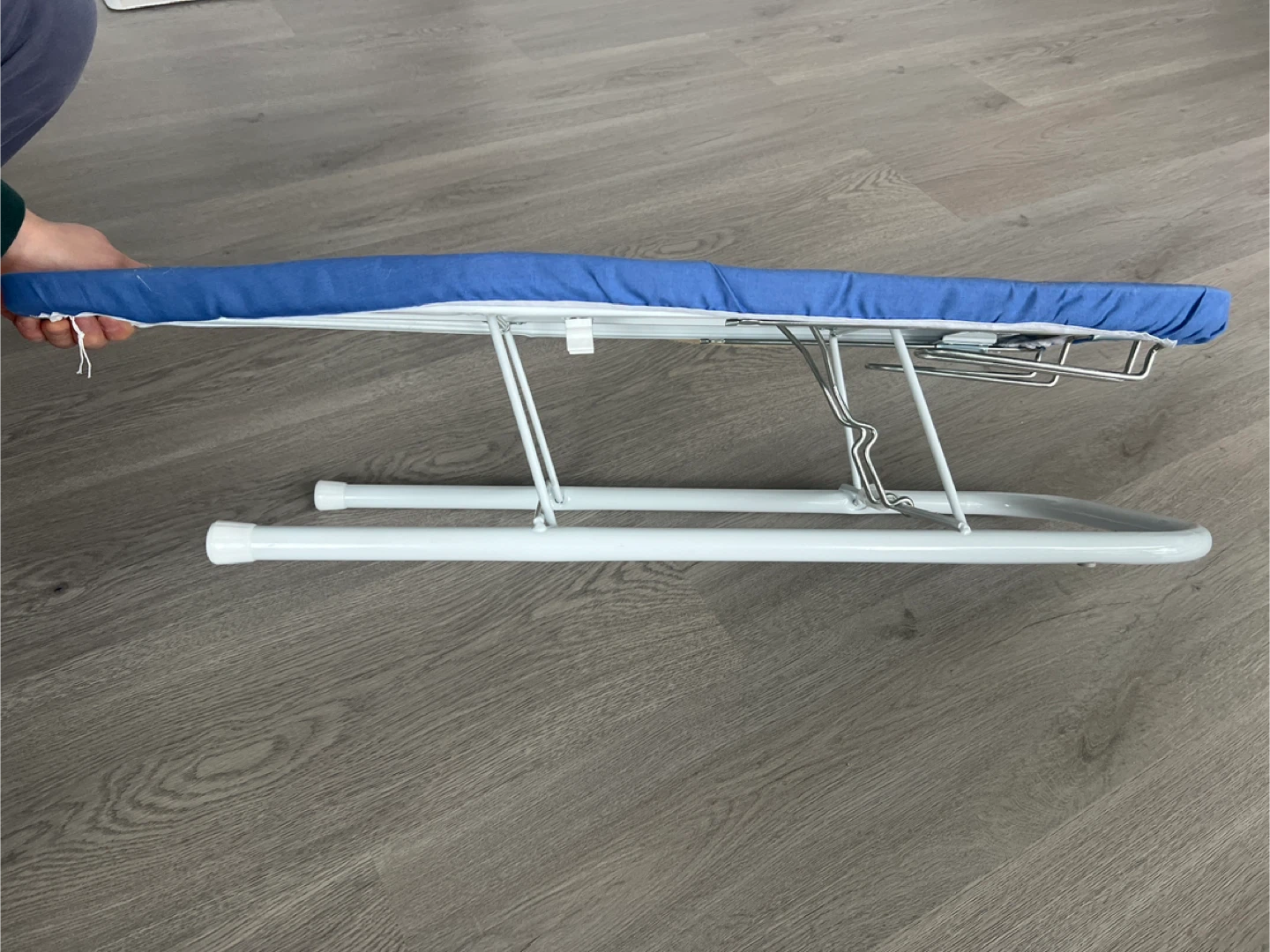 Selling a gently used ironing board! It's in great shape and ready to help you get those wrinkles out. The blue cover is clean and the white frame is sturdy. Perfect for small spaces and easy to store