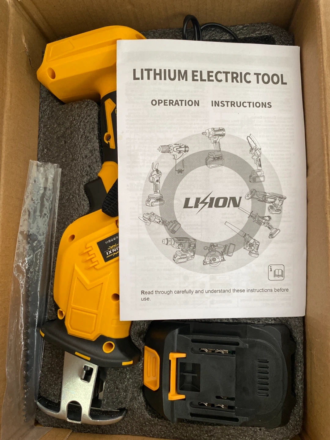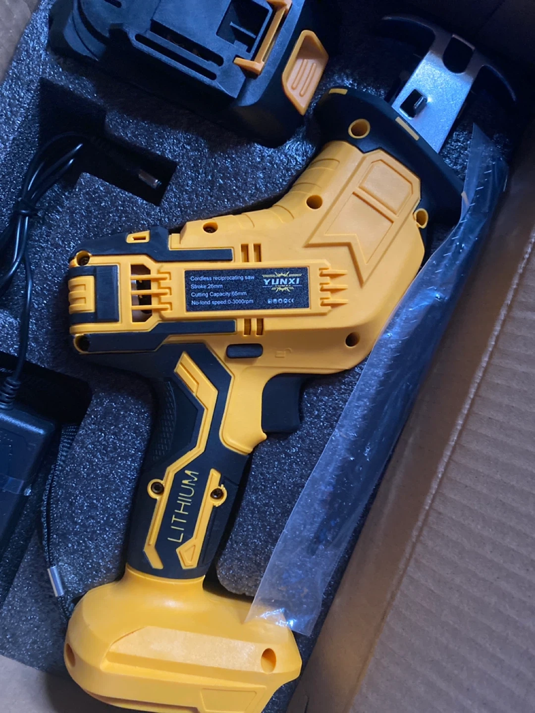 Selling a Yunxi cordless reciprocating saw. It comes with the charger and instructions. The saw has a stroke of .26mm and a cutting capacity of 65mm. No-load speed is 0-3000rpm. The charger still works, but was damaged in shipping. Great for small jobs around the home & garden π₯