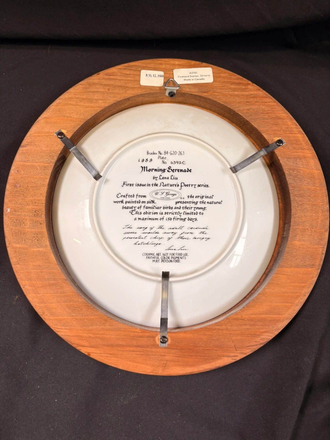 Selling a beautiful set of Knowles collector plates! One is titled "Morning Serenade" by Lena Liu, and the other features a cardinal family. Both are in great condition and ready to brighten up your home.