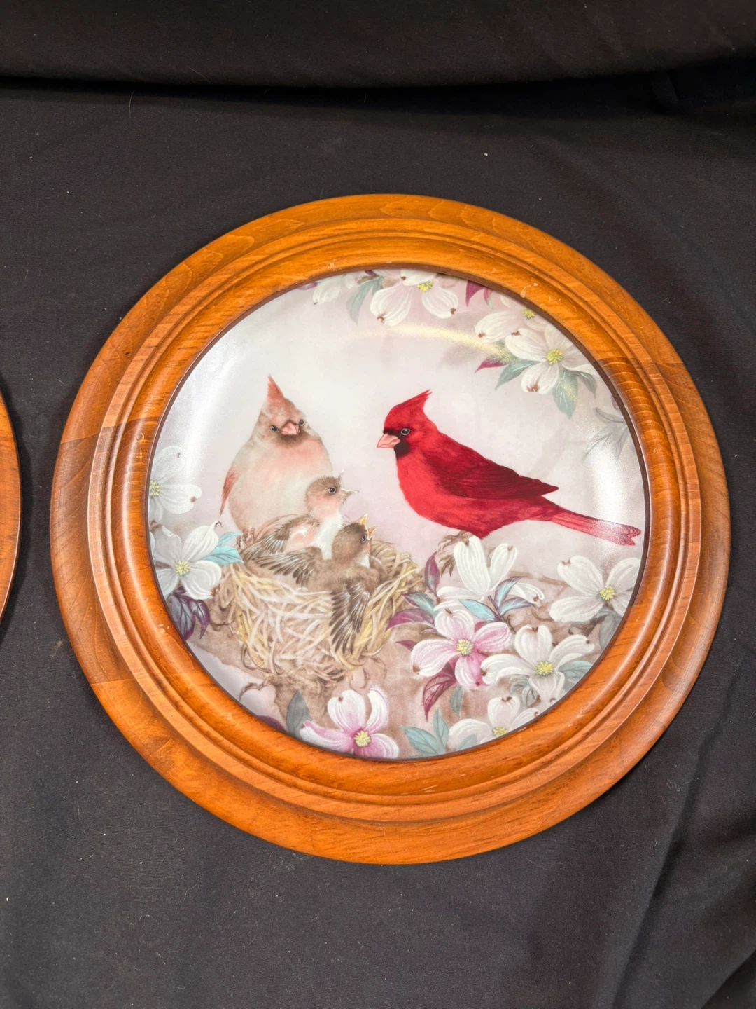 Selling a beautiful set of Knowles collector plates! One is titled "Morning Serenade" by Lena Liu, and the other features a cardinal family. Both are in great condition and ready to brighten up your home.