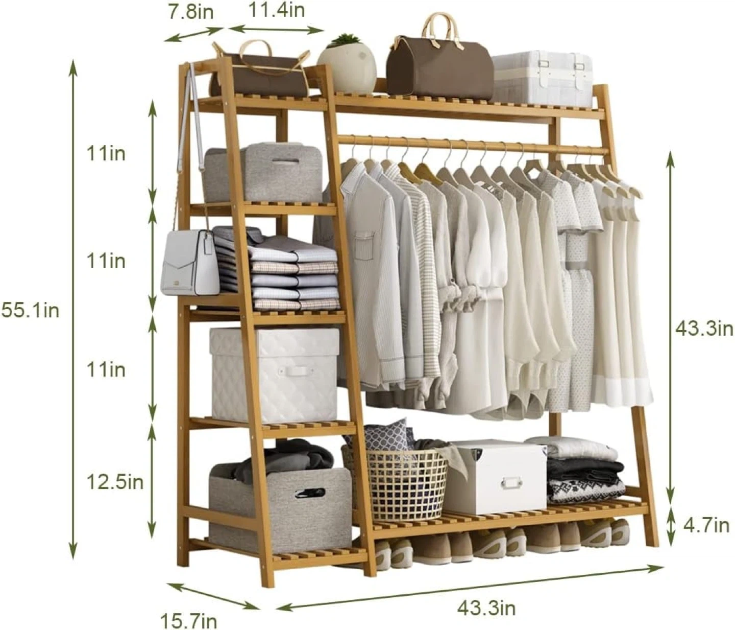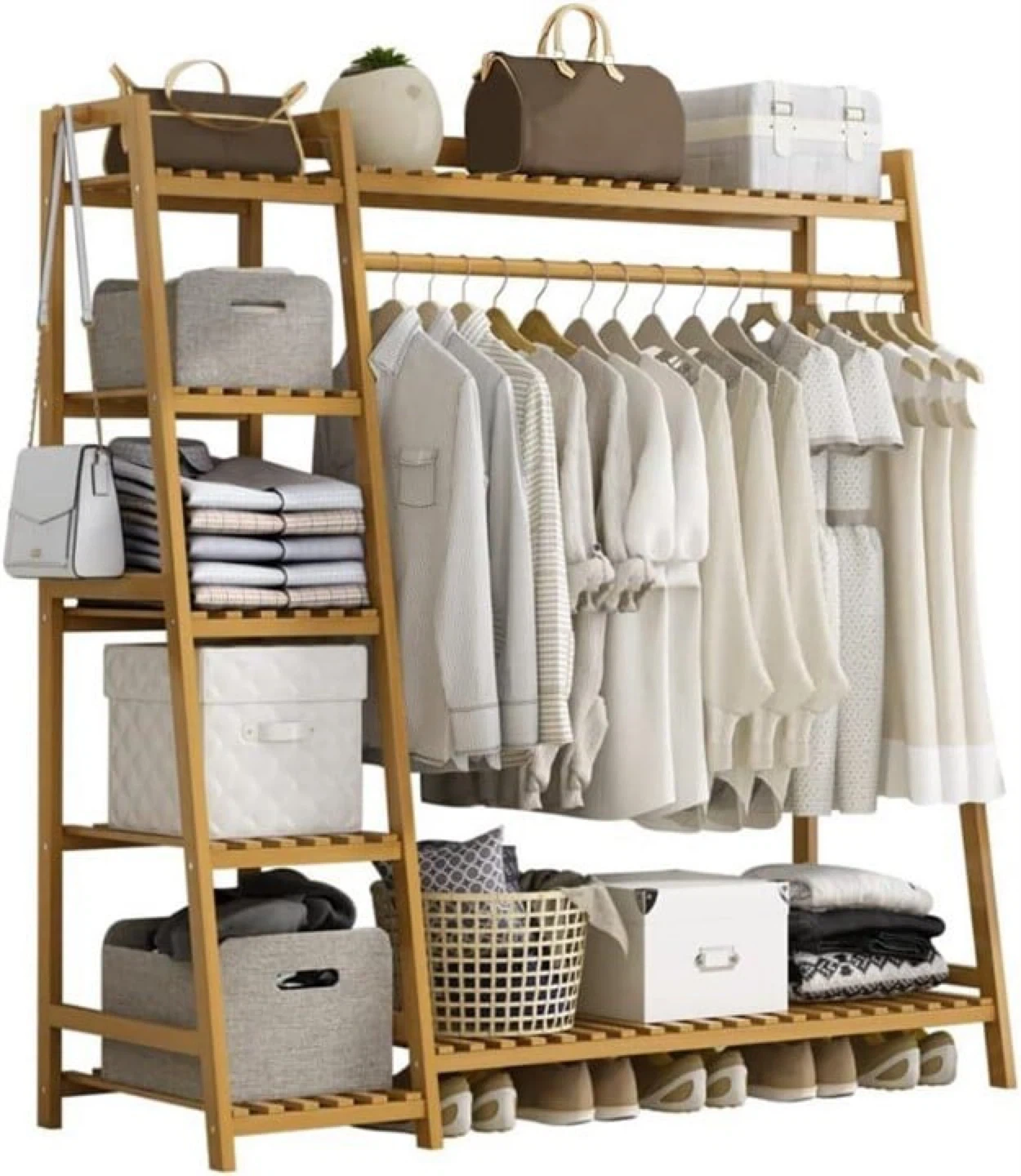 Bamboo A-Frame Garment Rack and Shelf Unit