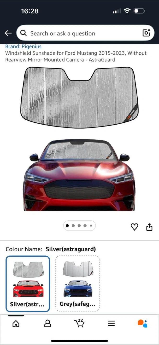 Pigenius Windshield Sun Shade for Ford Mustang 2015–2023 – NEW ☀️🏎️ ‼️FINAL SALE‼️ Brand new windshield sun shade by Pigenius. Custom fit for Ford Mustang 2015–2023 ⚠️ For models without rearview mirror mounted camera. ✅ Brand new, never used ✅ Custom windshield fit ✅ Helps reduce interior heat ✅ Protects dashboard & interior ✅ Easy to fold and store 📦 Condition: New 💰 Price: $30 Pickup or meetup available. See my other listings 👀