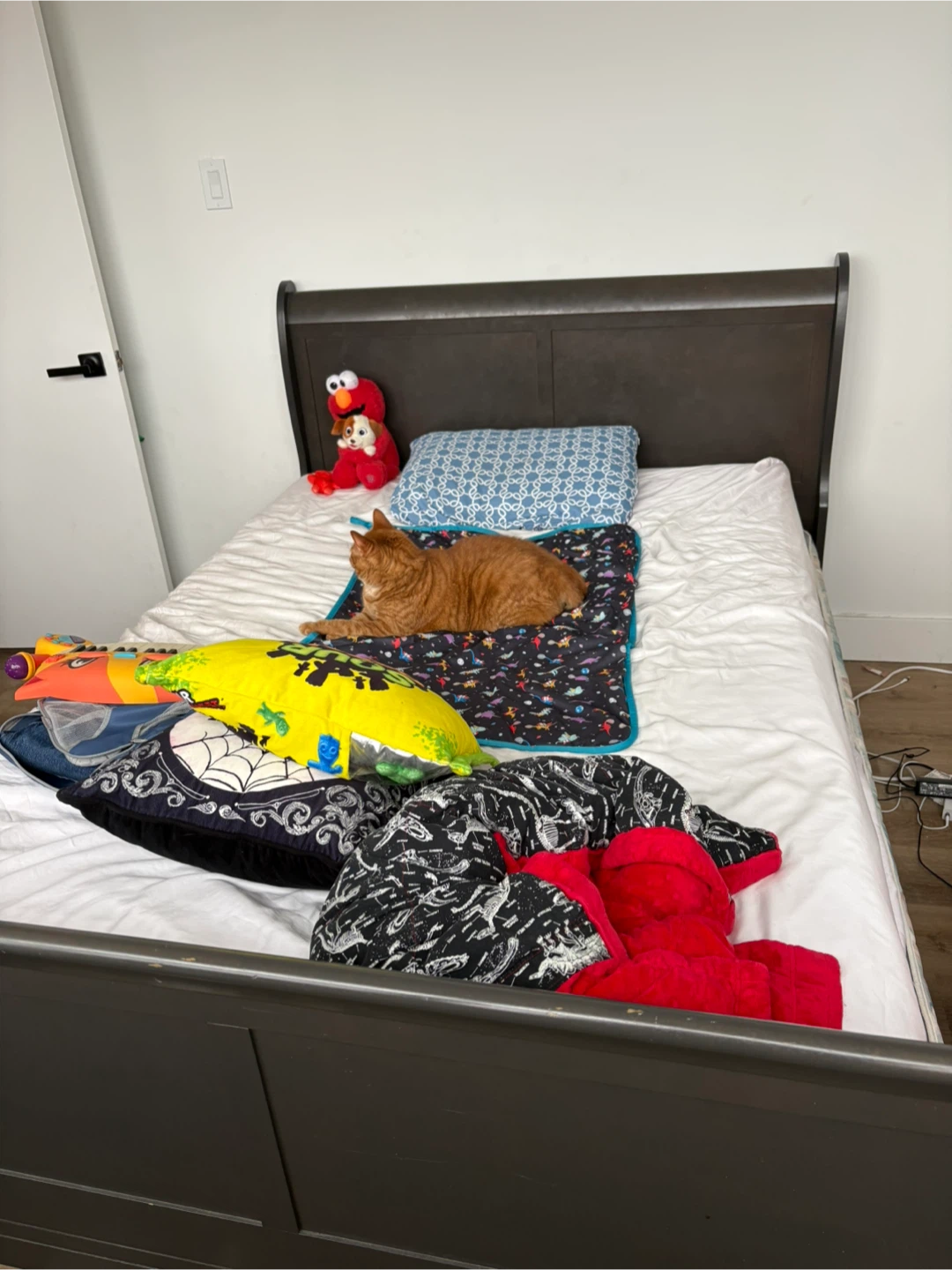 Frame only. Holds a double/full mattress. Sturdy, all the parts are here. Has been well-loved by my son and is in good shape and ready for a new adventure. Can send closeup photos if requested.