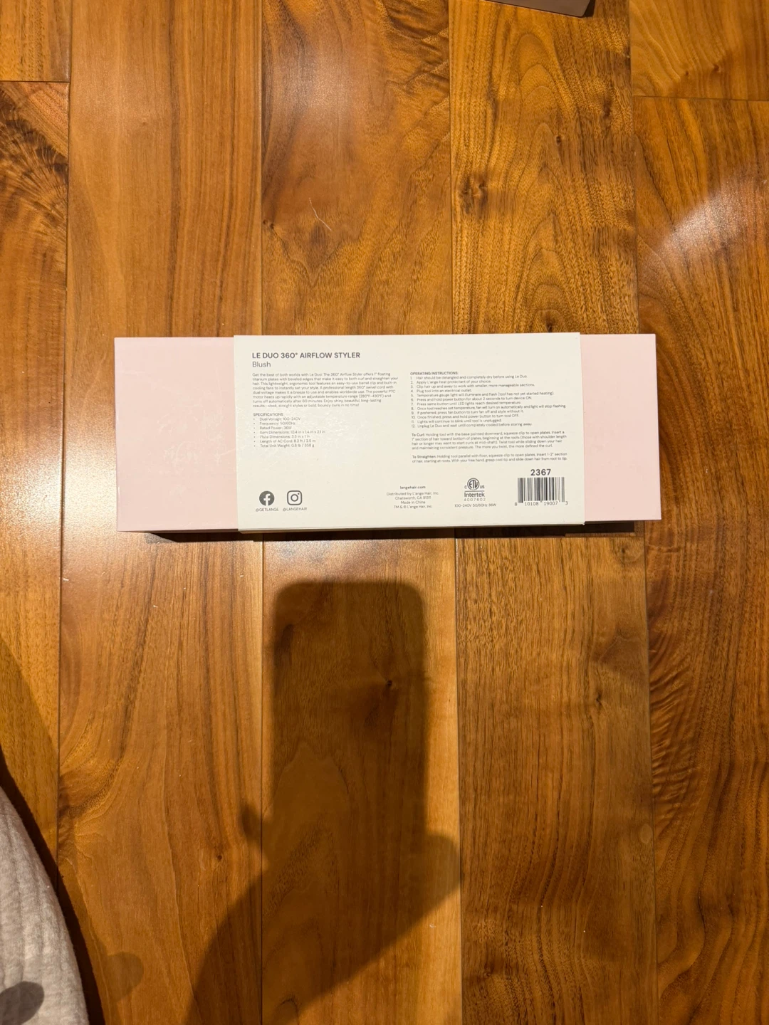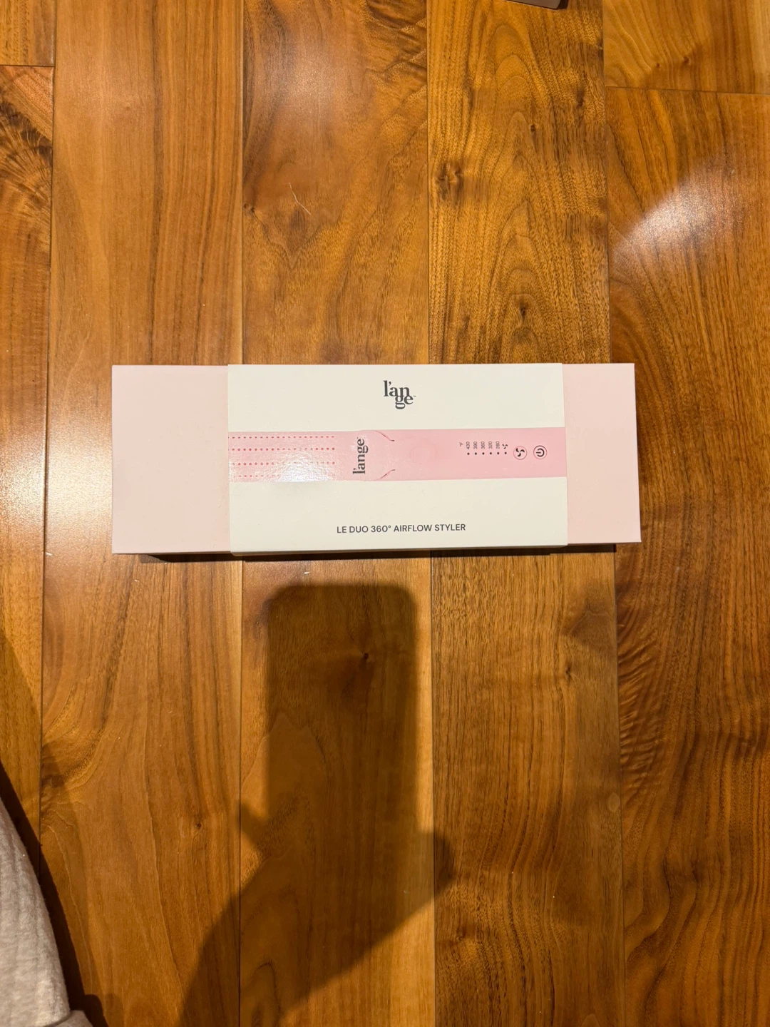 This is the Lange Le Duo 360° Airflow Styler in Blush. It's a hair styling tool designed for efficient drying and styling. The styler comes with a dust bag and heat-resistant mat.
