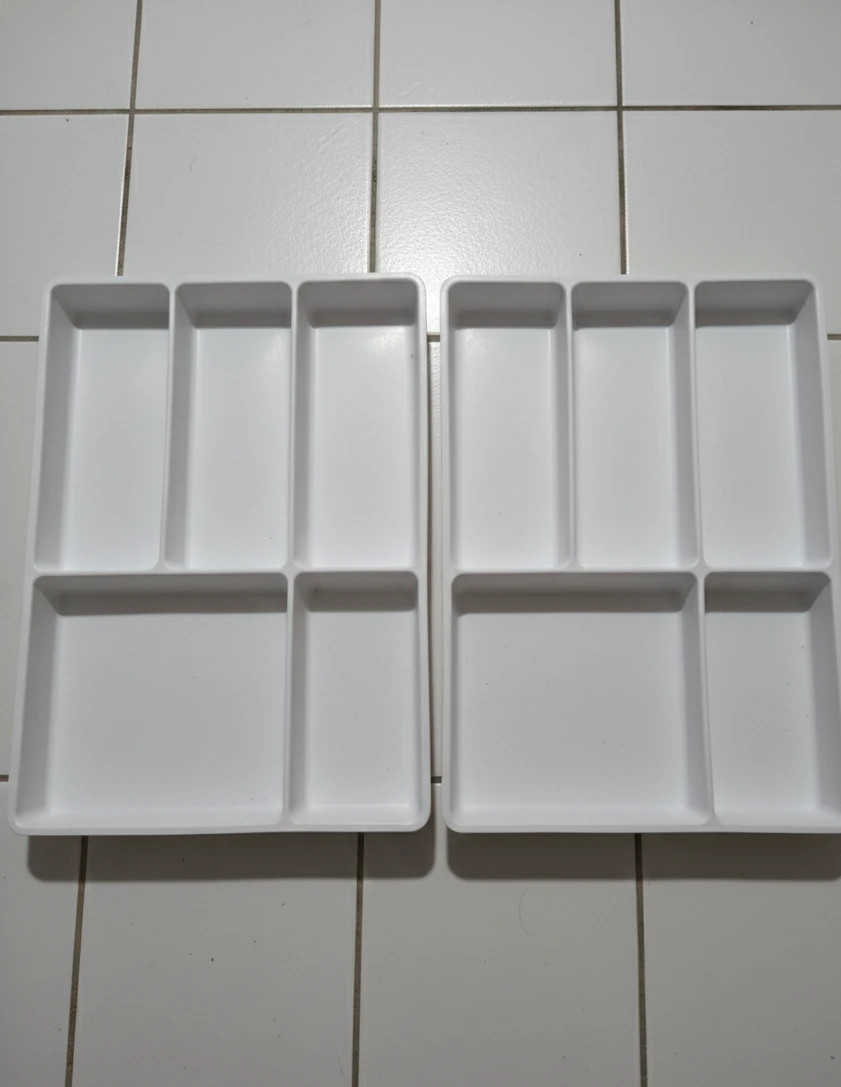 Selling a couple of white drawer organizers! They're perfect for keeping your drawers tidy and organized. Great for cutlery, office supplies, or anything else you need to keep in order