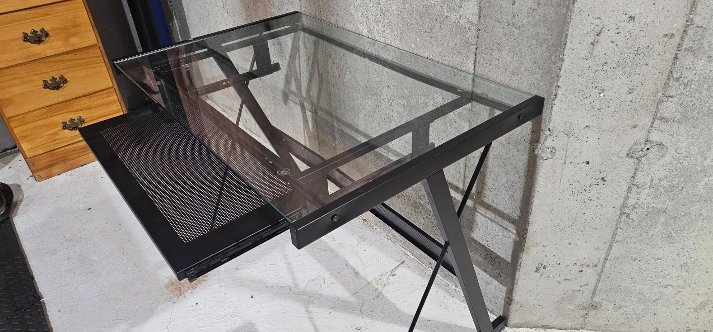 Glass top desk with pull-out keyboard tray