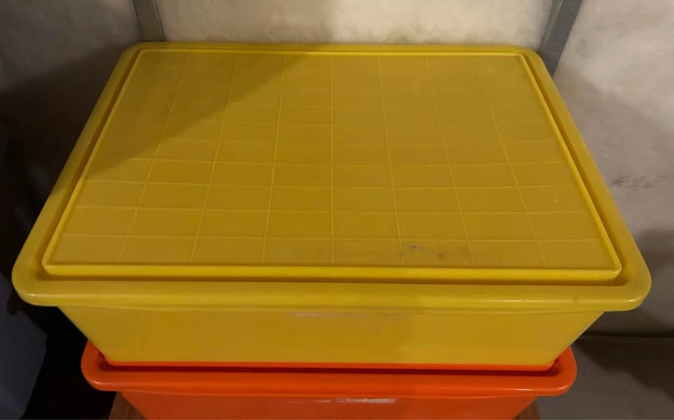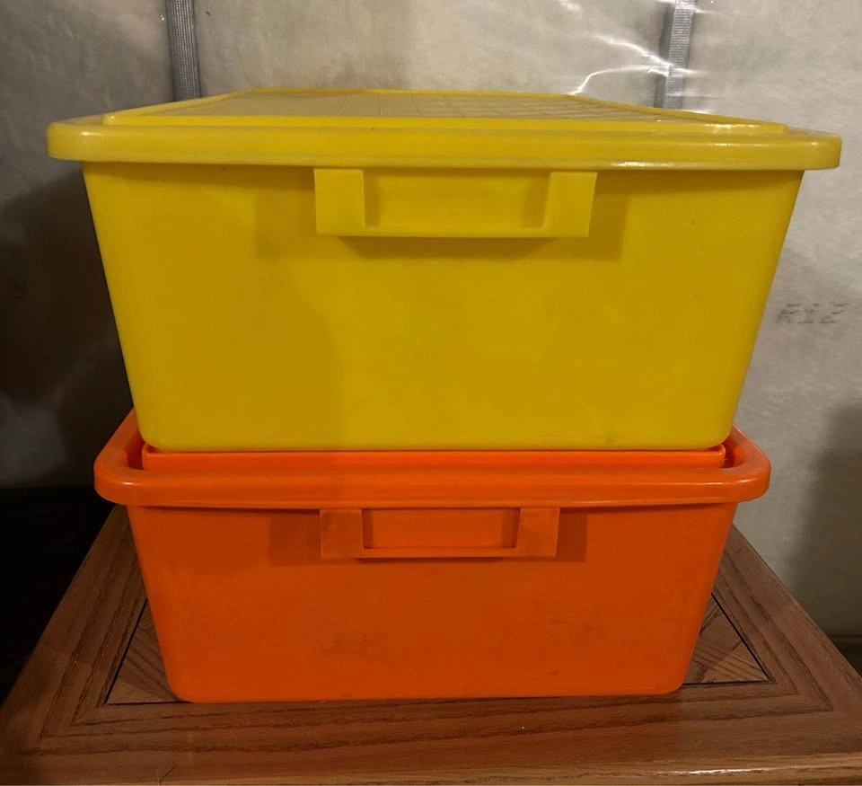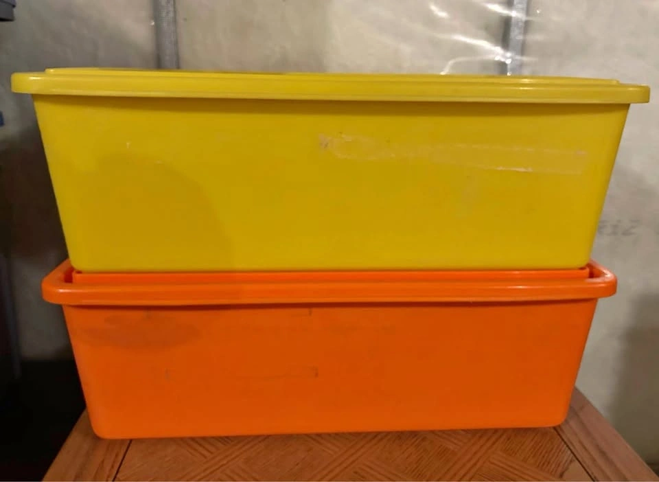 Containers has some minor marks and scuffs and some tape residue on the outside.