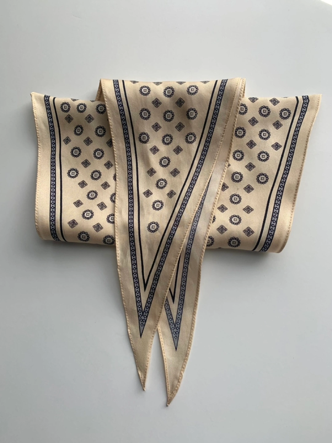 Silk scarf with a geometric pattern.
