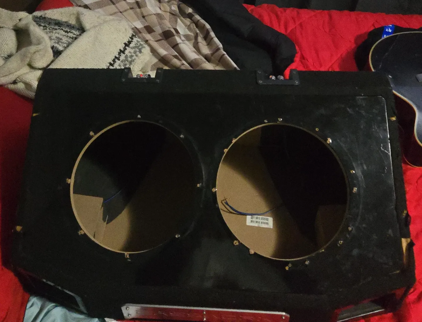 This is a Bassworx dual 12 inch subwoofer box. It's constructed with durable material and has terminal cups for easy hookup. This enclosure is ready to house your subwoofers for enhanced car audio!